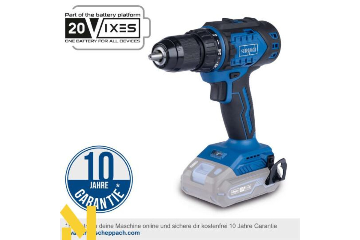 Бездротова робота з серією Scheppach IXES 20 вольт – усі акумулятори та зарядні пристрої системної серії можна комбінувати з акумуляторним дрилем-шурупокрутом