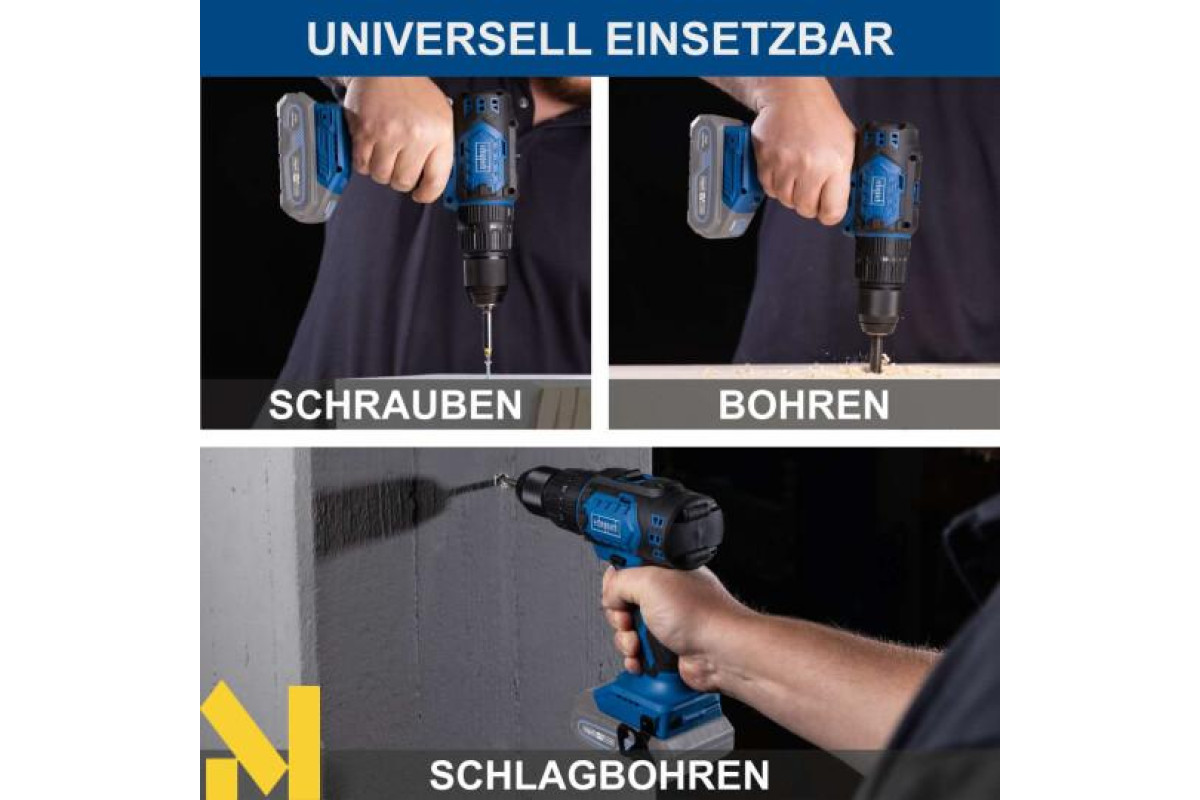 Акумуляторний ударний дриль Scheppach BC-CD60-X з практичною функціональністю 3-в-1 ідеально підходить для свердління, ударного свердління та загвинчування шурупів. З максимальним крутним моментом 60 Нм, потужною 2-швидкісною коробкою передач та 19 рівнями крутного моменту, рівнем свердління та рівнем ударного свердління, ударний дриль є потужним універсальним інструментом для використання вдома, в саду, на будівельному майданчику або для мобільного використання. BC-CD60-X оснащений потужним безщітковим двигуном. Цей безщітковий двигун забезпечує особливо високу ефективність, довший час роботи, тривалий термін служби та знижений знос. Як частина серії Scheppach IXES 20-вольт, усі акумулятори та зарядні пристрої системи можна комбінувати з ударним дрилем.