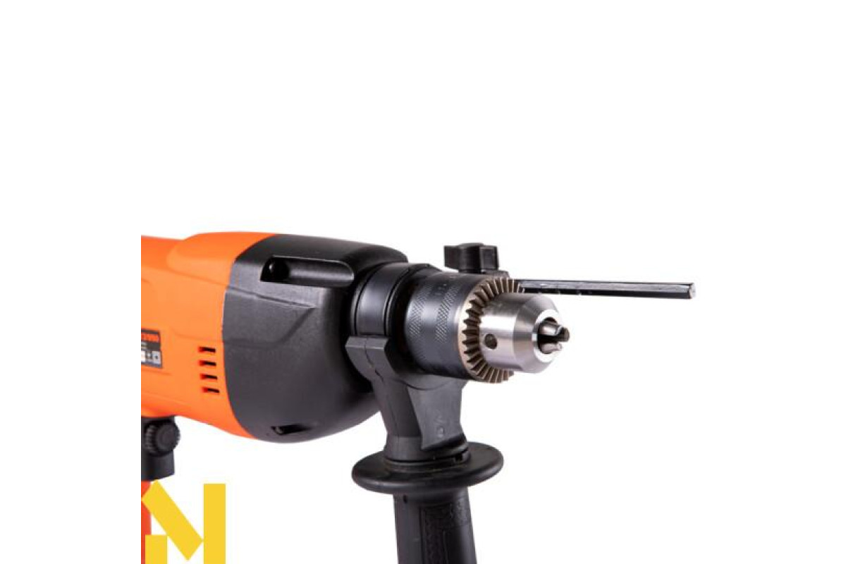 Дриль зручно лежить в руці завдяки оптимальній формі корпусу та ергономічним гумовим накладкам. Додаткова ручка дозволяє надійніше фіксувати дриль під час роботи та раціонально розподіляти навантаження на руки.