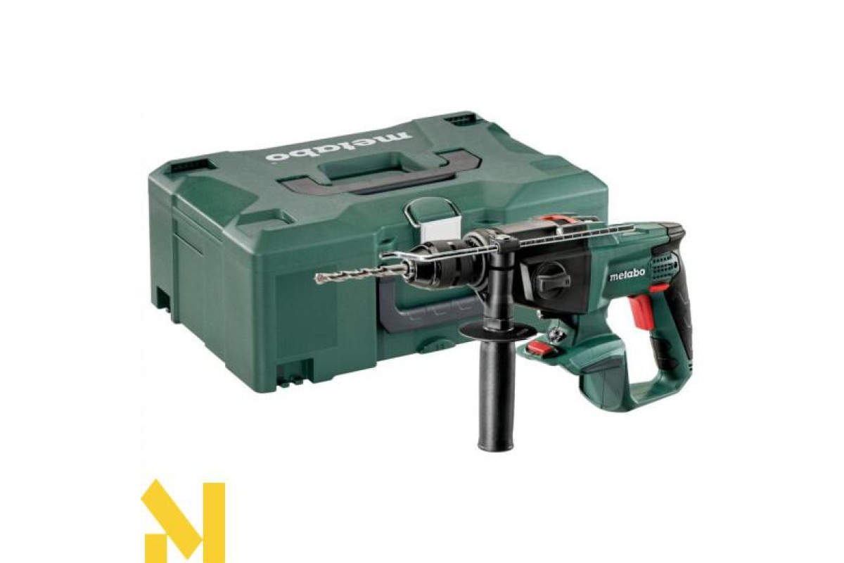 - Комплектація: додаткова рукоятка, обмежувач глибини свердління, вставка в кейс MetaLoc