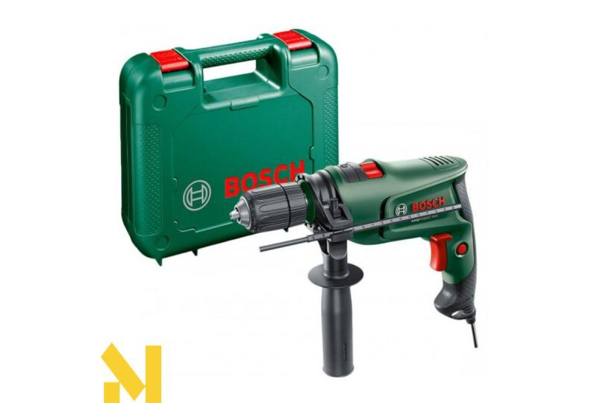 Мережевий дриль Bosch EasyImpact 600 потужністю 600 Вт з налаштованим числом оборотів до 3000 об/хв, ударним механізмом (до 45000 уд/хв), допоможе зробити отвори в бетоні до 12 мм, деревині 25 мм, сталі 10 мм. Три робочих режима: свердління, свердління з ударом і закручування дозволять виконати домашньому майстру будь-яку роботу, пов'язану зі свердлінням, закручуванням. Номінальний крутний момент 1,4 Нм. Швидкозатискний патрон. Кабель 2,5 м. Електронне регулювання кількості обертів. Доставляється в валізі з обмежувачем глибини і додатковою рукояткою.