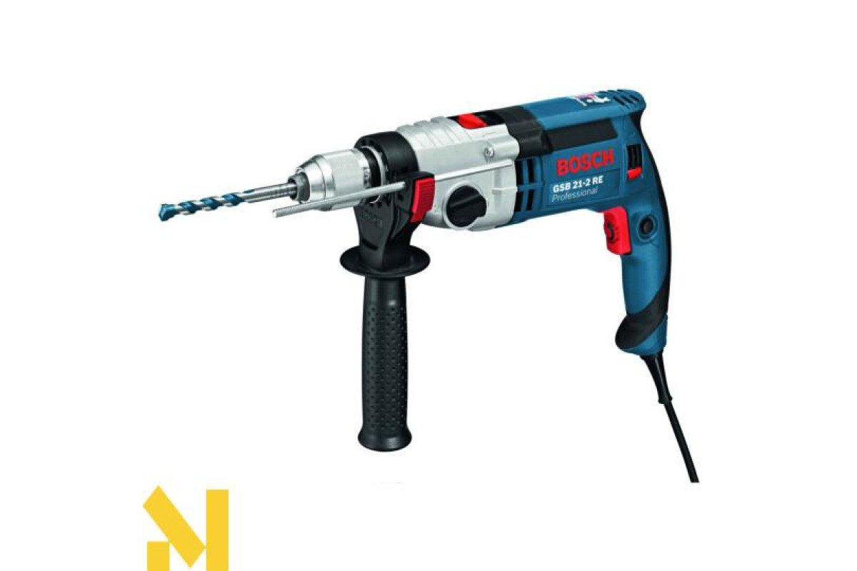 Ударний дриль Bosch GSB 21-2 RE ЗВП оснащена потужним електричним двигуном, редуктором в металевому корпусі для довговічної роботи і зручним упором для регулювання глибини свердлення. Завдяки такому оснащенню двошвидкісна дриль Bosch (Бош) GSB 21-2 RE призначена для зручної високоякісної інтенсивної роботи і виконана в ергономічному дизайні, який передбачає малу вагу і невеликі габаритні розміри, що сприяє неймовірно зручній роботі над головою, на відкритих ділянках і на ділянках з обмеженим простором. Для більш комфортної експлуатації 2-швидкісна електродриль Bosch GSB 21-2 RE оснащена ергономічною ручкою з м'якою накладкою для упевненої роботи і одногільзовим швидкозажимним патроном. Крім того в апараті є зручний регулятор вибору кількості обертів, що сприяє оптимальному налаштуванні електроінструменту для роботи з певним видом матеріалу, а інтегрований електричний двигун на 1100 Вт потужності і добре захищений 2-швидкісний редуктор дозволяють інструменту Бош GSB 21-2 RE ЗВП розвивати швидкість до 3000 об / хв на холостому ходу.