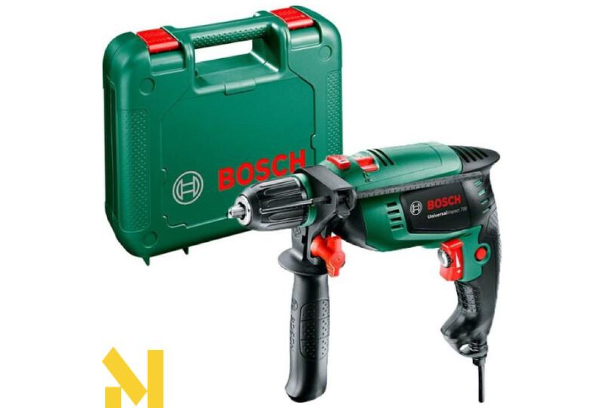 Дриль ударний Bosch UniversalImpact 700 - потужний, продуктивний і в той же час компактний, легкий інструмент для домашнього використання. Закручування невеликих шурупів, свердління отворів в дереві, пластмасі, металі, цеглі, камені і навіть бетоні - це завдання, з якими Bosch UniversalImpact 700 без сумнівів впорається "на відмінно".