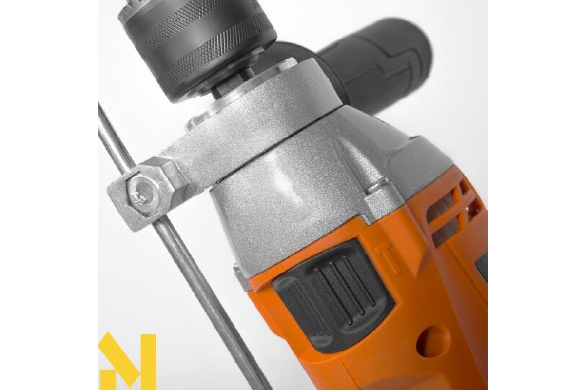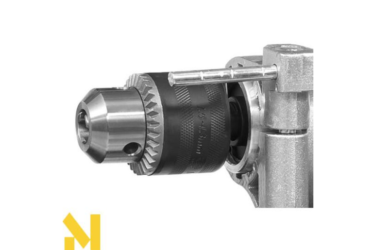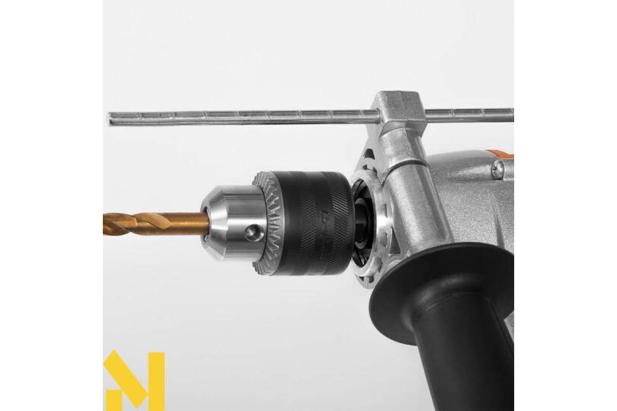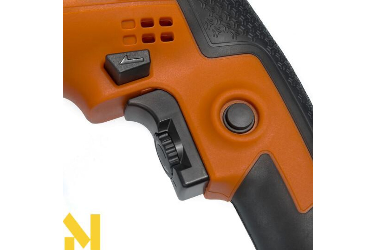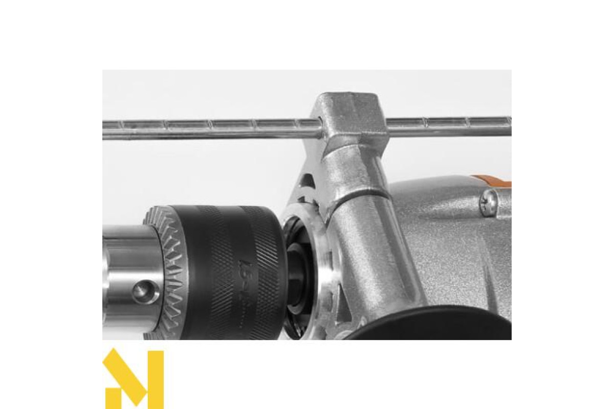 Міцна, довговічна ударна дриль. Корпус редуктора свердла посилений магнієвим сплавом. Для комфортної роботи інструмент має металеву допоміжну рукоятку, можливість регулювання швидкості обертання та можливість зміни напрямку обертання (вправо/вліво).