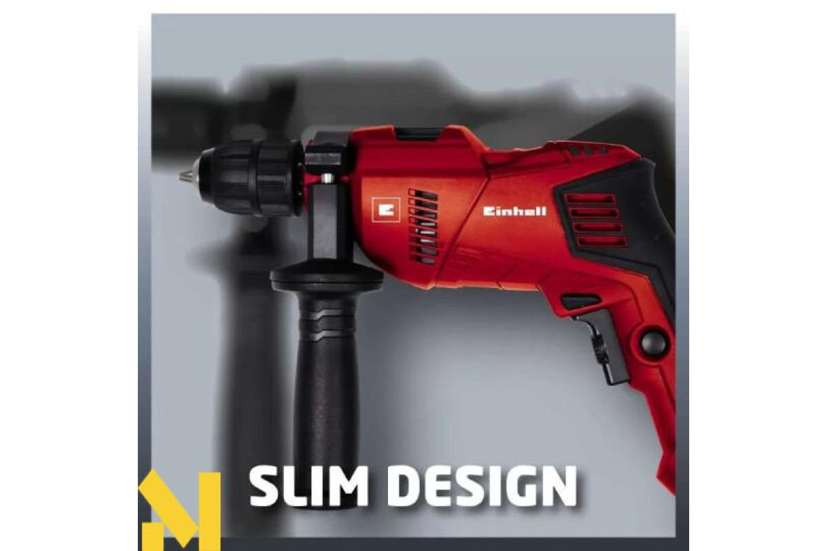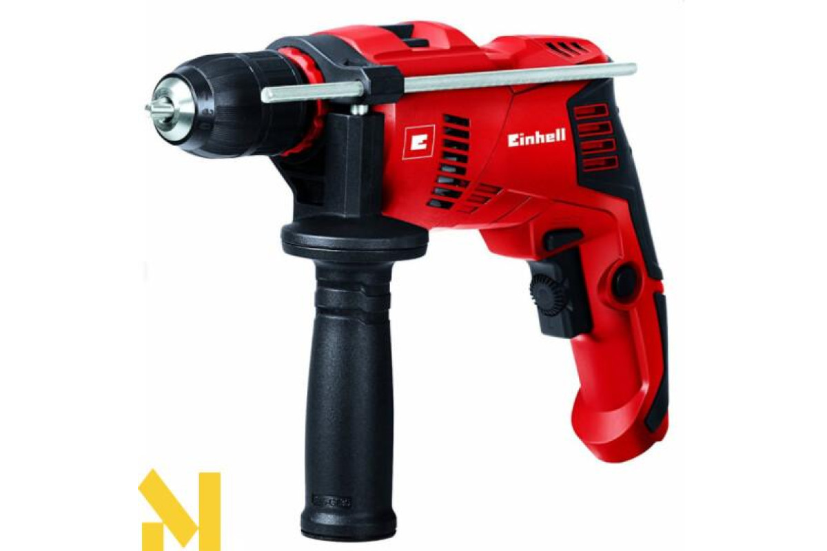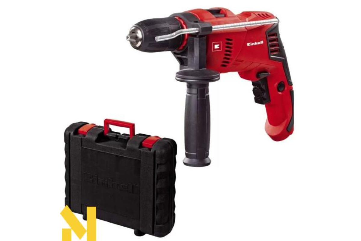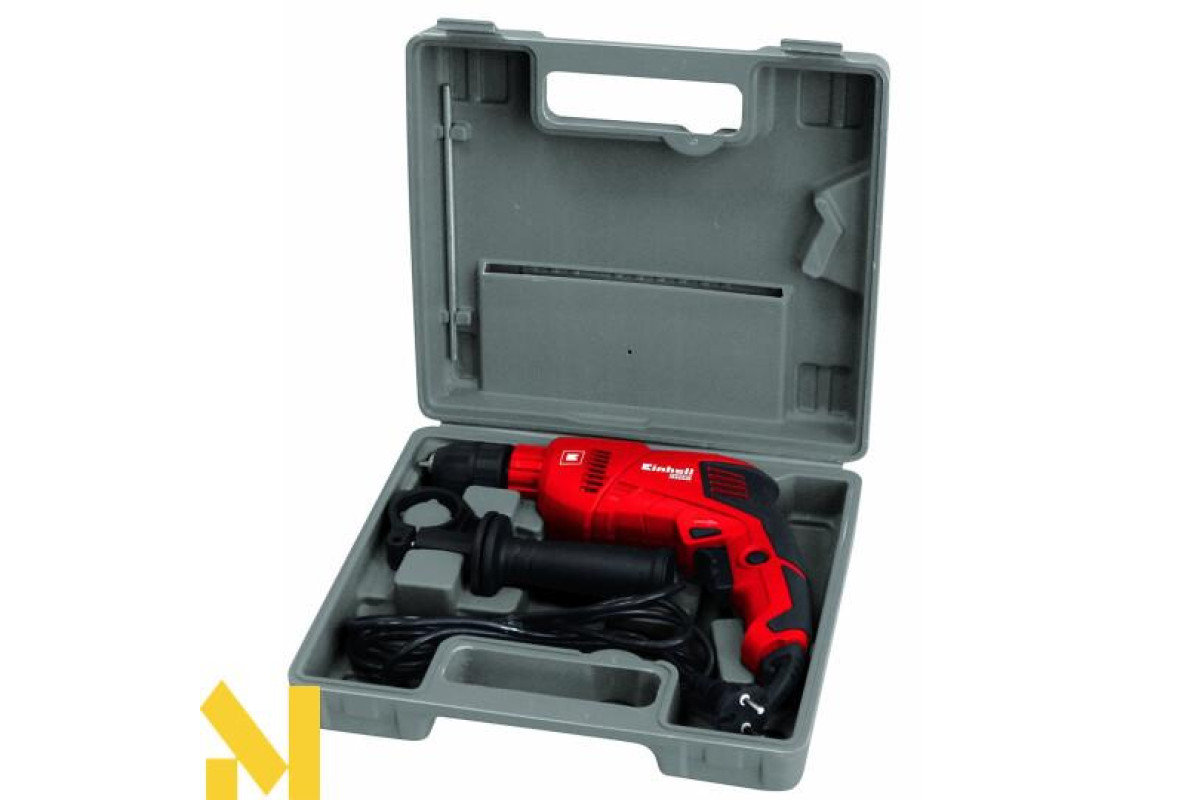Дриль EINHELL TE-ID 500 E (4259610) оснащена двигуном потужністю 550 Вт, має електронне регулювання обертів в діапазоні 0-3000 об/хв. Ви можете регулювати швидкість обертання під час роботи, шляхом більш-менш сильного натискання на кнопку пуску. Ударний механізм 0-48000 уд / хв, значно розширює сферу її застосування, дозволяючи працювати з деревом, залізом, кольоровим металом і каменем. Ударний дриль має плавний хід і низький рівень вібрації, а також II клас захисту. У комплекті поставляється в пластиковому кейсі з додатковою рукояткою і обмежувачем глибини.