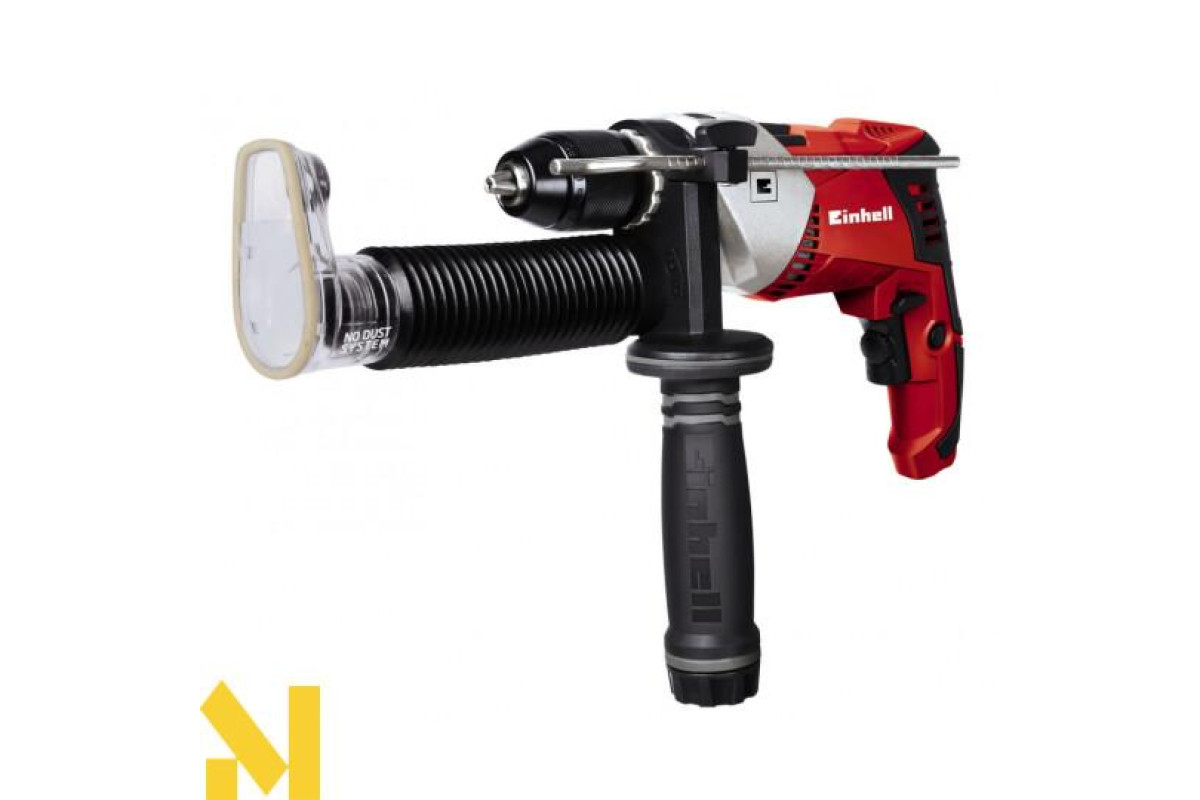 Дриль ударний Einhell TE-ID 750 E універсальний інструмент, який забезпечує дуже хороше обслуговування. Якісний одношпиндельні патрон з функцією блокування і блокування шпинделя, забезпечують зручну заміну оснащення. Дриль TE-ID 750 E оснащена інноваційним адаптером для видалення пилу. М'який захоплення і додаткова рукоятка забезпечують безпечне і зручне управління інструментом. Двигун потужністю 750 Вт видає максимальну кількість обертів 3000 об / хв. Вентиляційні отвори виключають перегрів дрилі. Вага інструменту 2,3 кг.