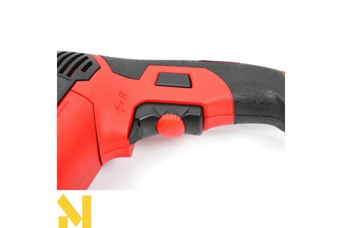 Унікальні можливості дриля включають двоступеневий редуктор, що гарантує оптимальне регулювання швидкості в залежності від матеріалу та діаметра свердла. Легкий доступ до лівого та правого перемикачів безпосередньо на ручці дозволяє зручно перемикати напрямок обертання, забезпечуючи максимальну ефективність роботи.