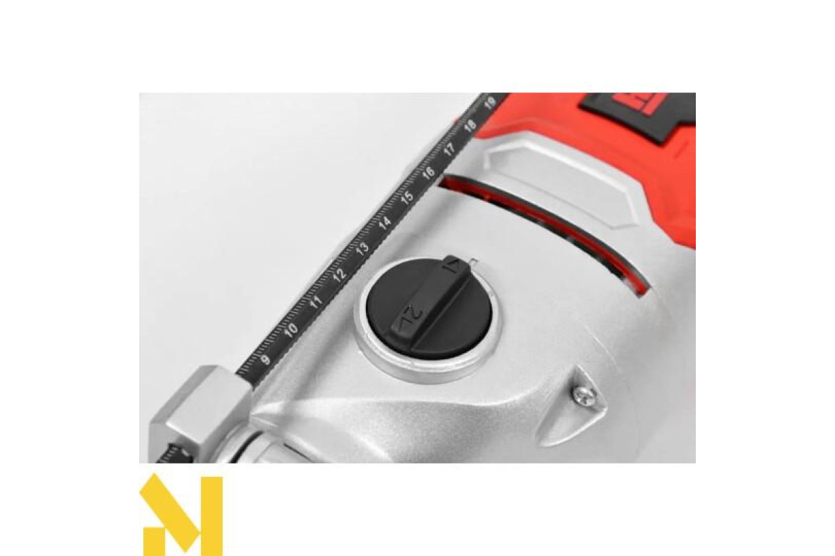 Легка прогумована пластикова ручка забезпечує міцний хват і ефективно зменшує передачу вібрацій, забезпечуючи комфортну роботу. Додатково, до складу дриля входить якісна знімна ручка з обмежувачем глибини, що робить його ще більш універсальним і зручним для використання.