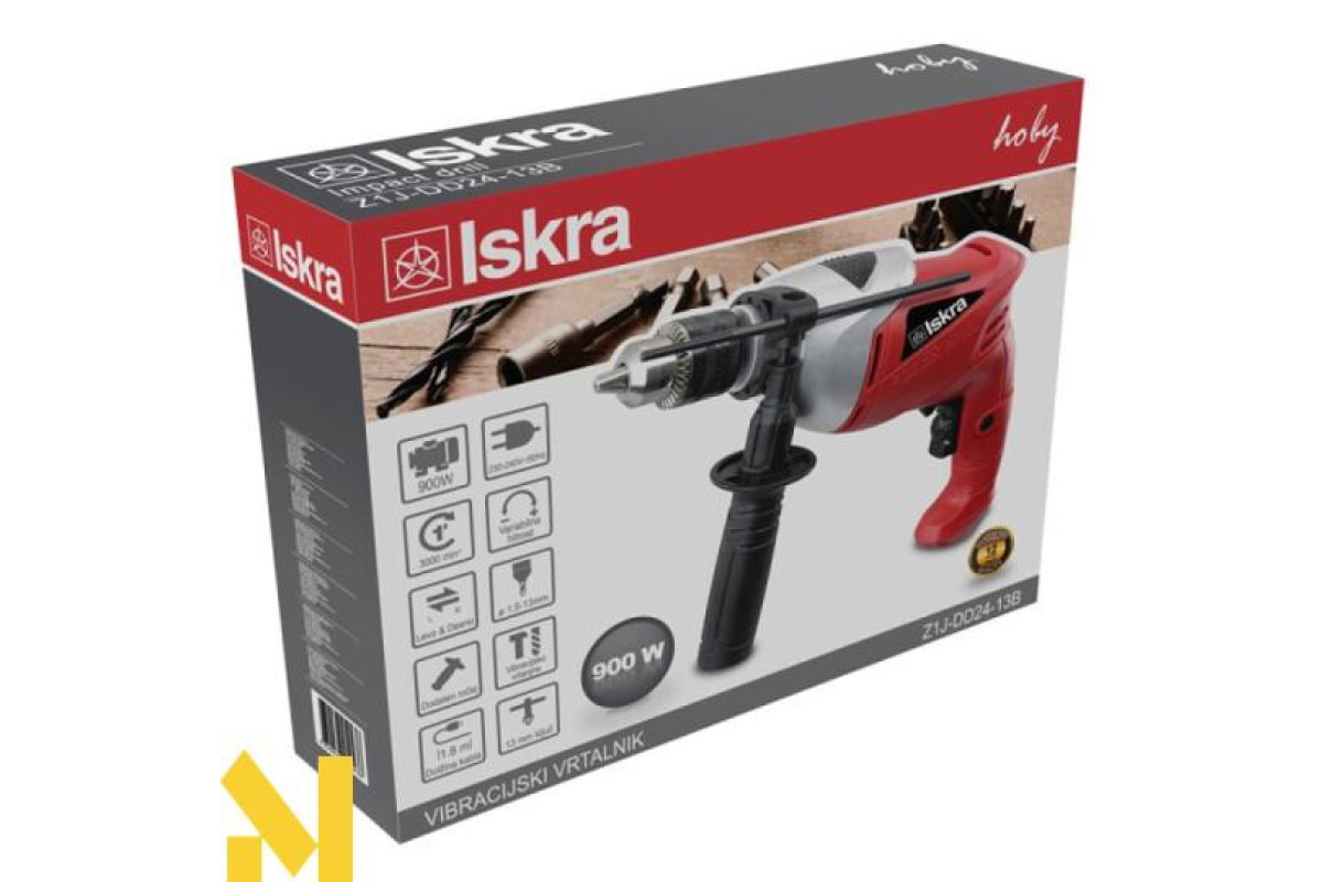 Дриль ударний ISKRA Z1J-DD24-13B дозволяє свердлити в сталі (Ø 13 мм), бетоні (Ø 16 мм) і дереві (Ø 25 мм) .