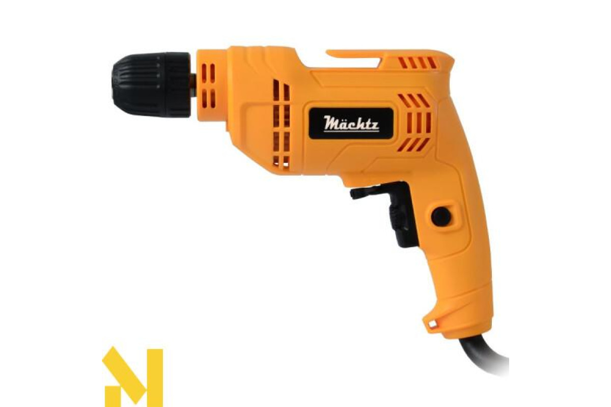 Завдяки надійному двигуну потужністю 600 Вт можна без проблем виконувати свердління в різних матеріалах: дереві, пластику, гіпсокартоні і металі.