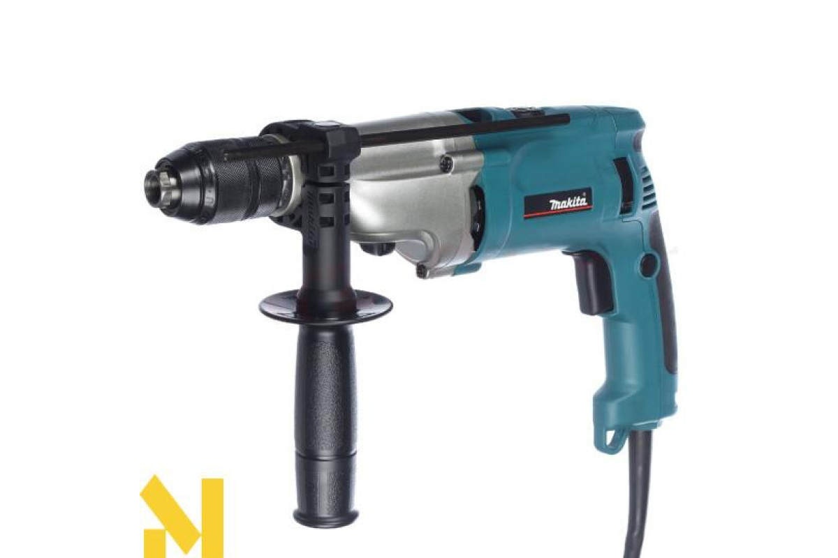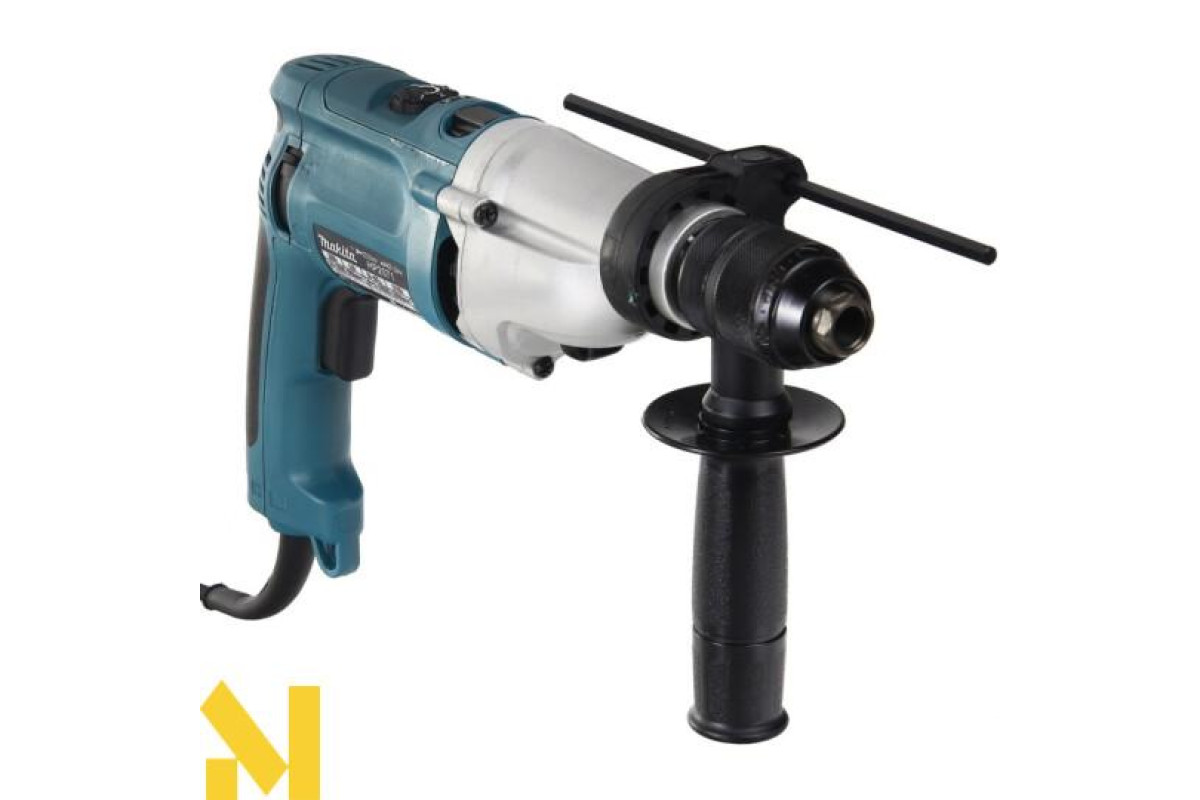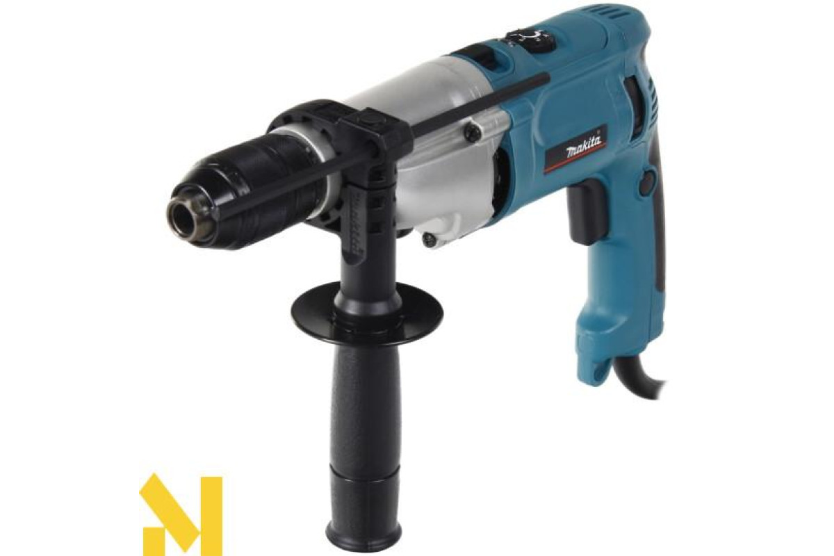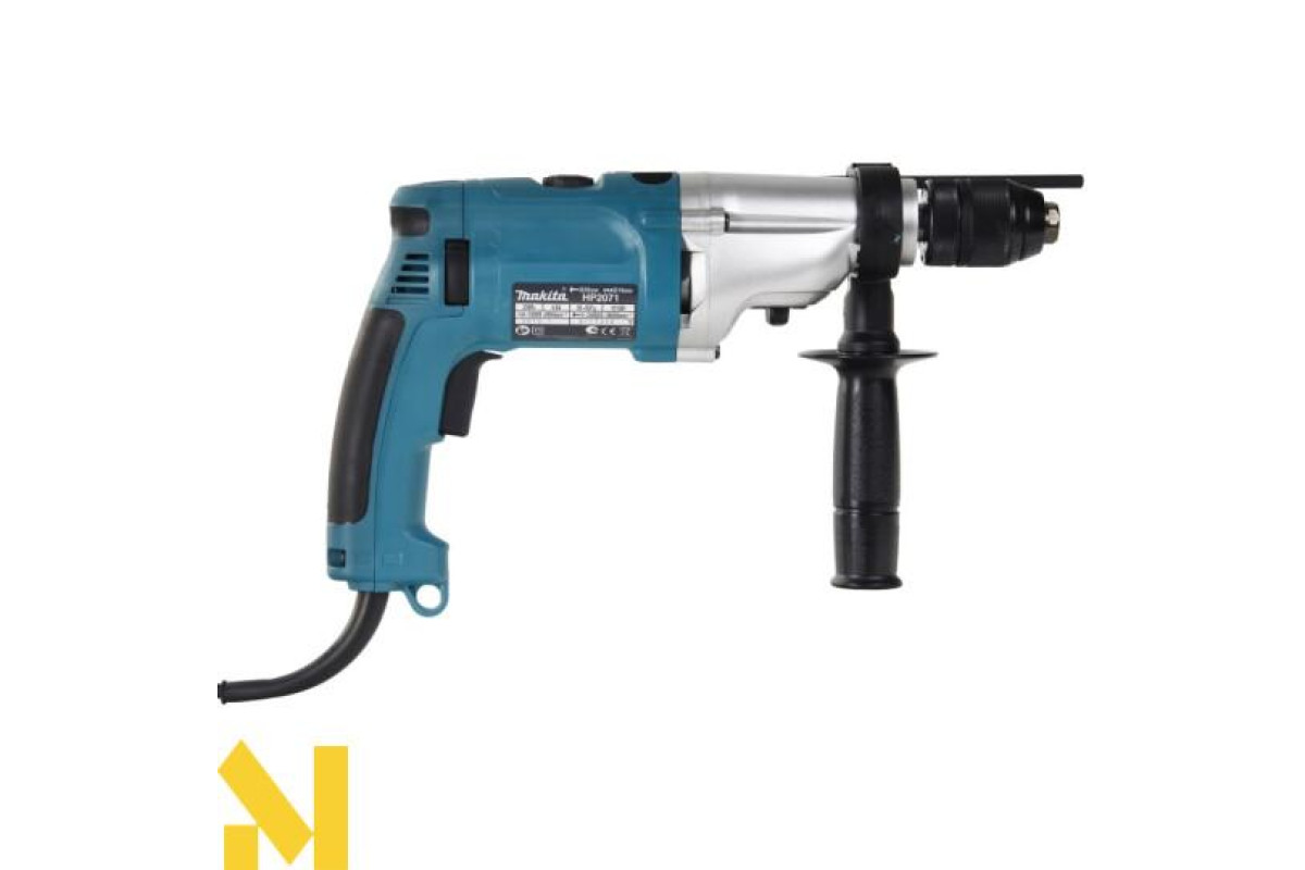 Ударний дриль Makita HP2071 призначений для виконання професійних робіт. Зокрема ним можна здійснювати свердління з ударом та без. Також присутня функція реверса. Продуктивність техніки доволі висока і цьому сприяє двохшвидкісний редуктор з електронним регулюванням. Його корпус виготовлено з алюмінію литого під тиском.