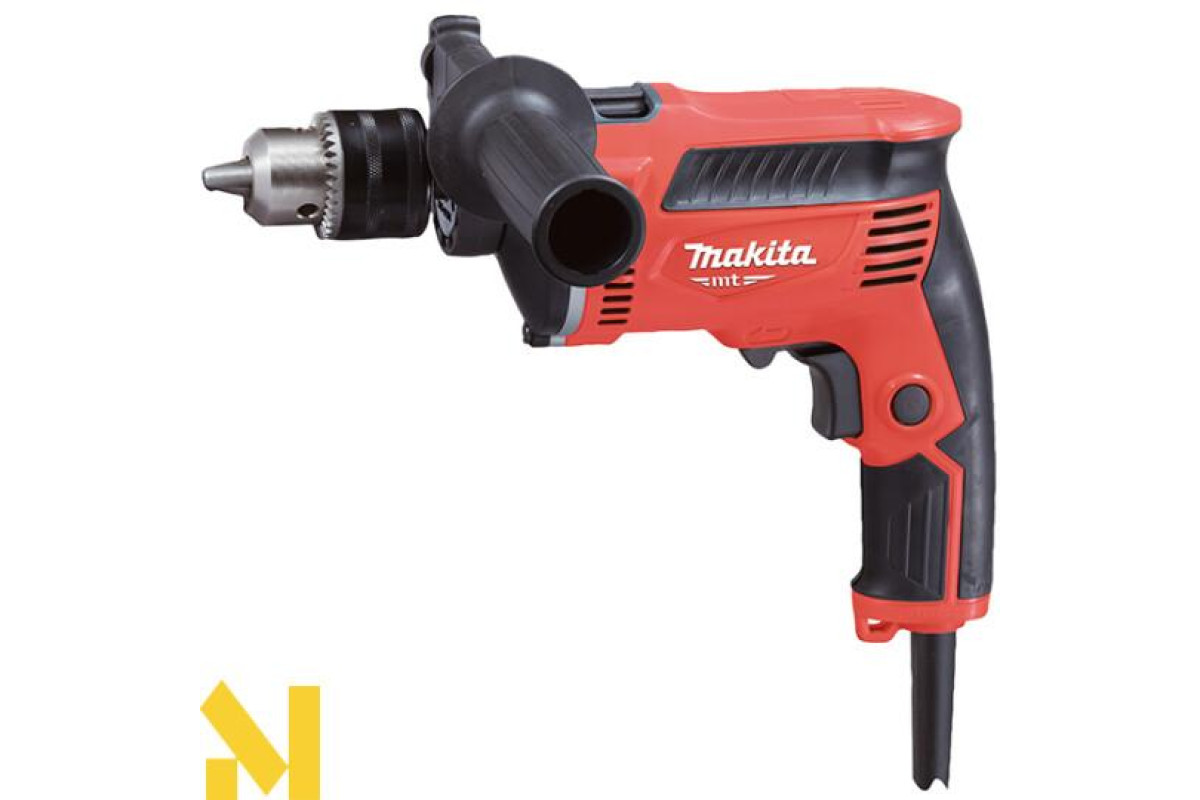 Іноді щоб просвердлити отвір у твердій поверхні, потрібна саме ударна дриль. Наприклад, така як Makita M8103. Вона без проблем зробить дірку в стали і бетоні діаметром 13 мм і дереві до 18 мм. Техніка також крім свердління може використовуватися як шуруповерт. Інструмент обладнаний двигуном потужністю 430 Вт., З досить міцним алюмінієвим корпусом редуктора. Крім цього плюсами є наявність функції реверсу.