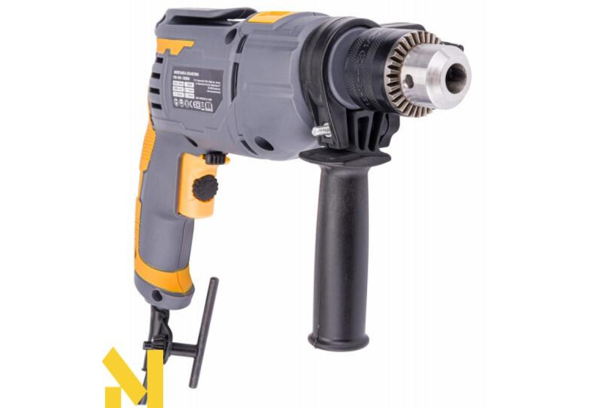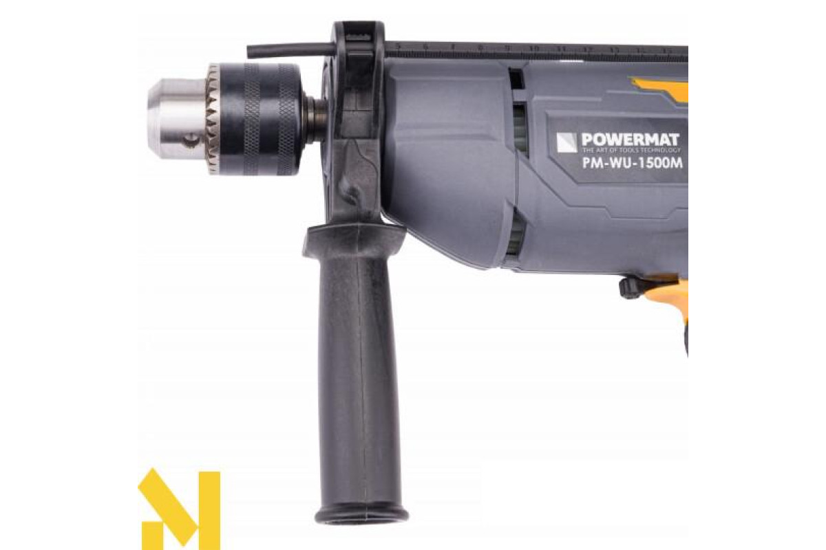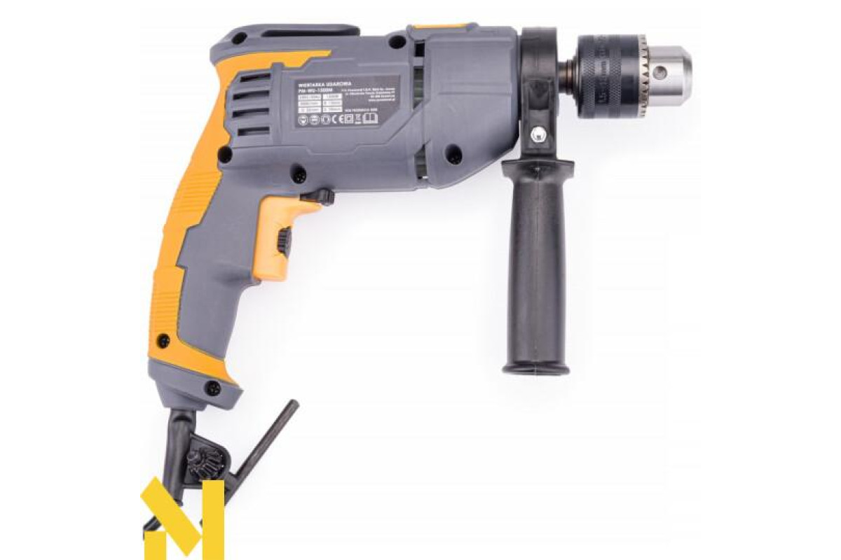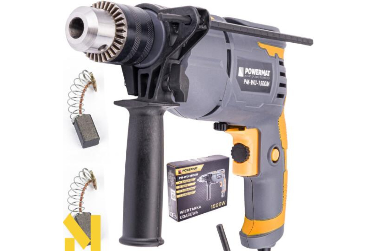 Електричний ударний дриль польської марки POWERMAT потужністю 1500Вт, призначений для ударного свердління в кам'яній кладці, бетоні та камені, а також для свердління в металі, кераміці, дереві та пластику.