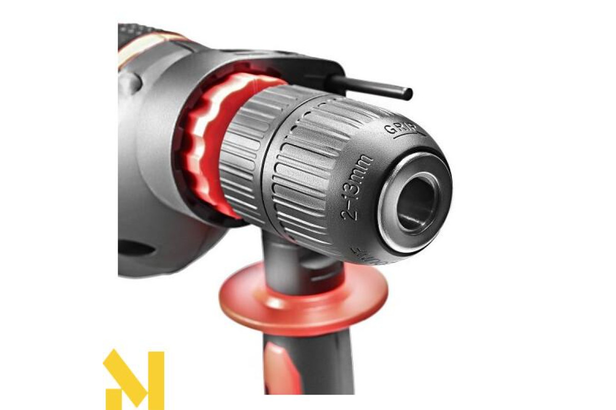 обладнаний швидкозажимним патроном, завдяки якому швидко змінюються свердла для свердління отворів різного діаметру і роботи з різними матеріалами;