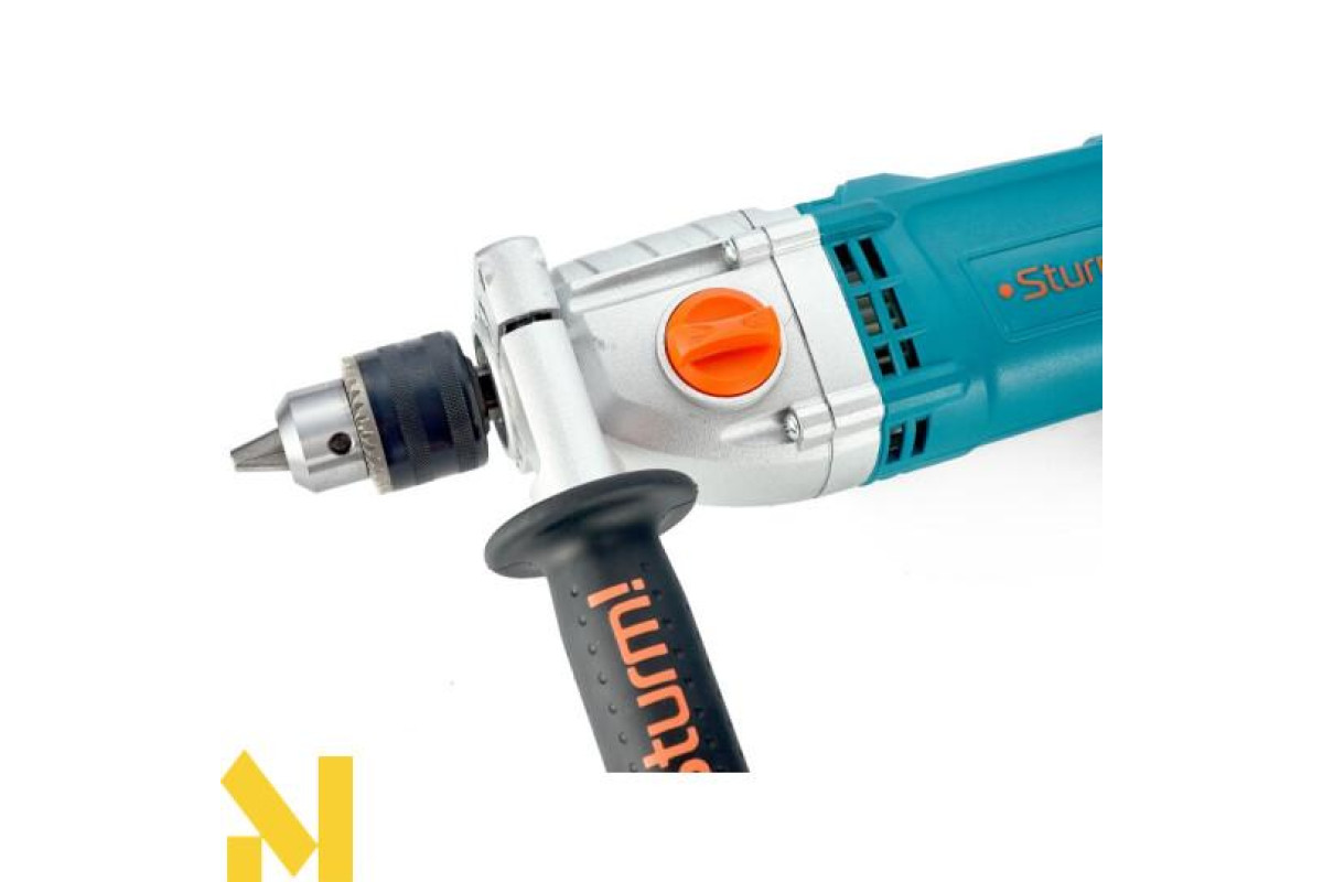 Ударний дриль Sturm ID21120AR створена для свердління отворів в цеглі, бетоні, дереві, металі та пластмасі. Електродвигун дрилі ID21120AR потужністю 1 150 Вт забезпечує швидкість обертання до 3200 об / хв. Електронне регулювання числа обертів, наявність реверсного режиму дозволяють вибрати необхідні параметри роботи. Зміна способу свердління здійснюється за допомогою вимикача ударного режиму. Швидкість обертання встановлюється за допомогою колісного регулятора, для зручності розташованого на клавіші пуску. Корпус інструменту виготовлений з жорсткого пластика, що забезпечує захист від пошкоджень. Додаткова знімна рукоятка з регулюванням положення на 360 градусів забезпечує впевнену, стійку роботу з інструментом обома руками. Кнопка фіксації вимикача застосовується при необхідності тривалої безперервної роботи з дрилем Sturm ID21120AR.