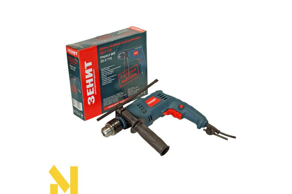 документиПотужний двигун на 1000 Вт, трьох-кулачковий зубчастий патрон, реверс, електронне регулювання швидкості обертання патрона, фіксація вимикача для режиму тривалої роботи, передня рукоятка, що обертається на 360 °, два режими роботи - свердління і свердління з ударом. Корпус редуктора з алюмінієвого сплаву забезпечує найкращий відведення тепла від вузла редуктора. Комплектується ключем для патрона, обмежувальним упором. Картонна упаковка.