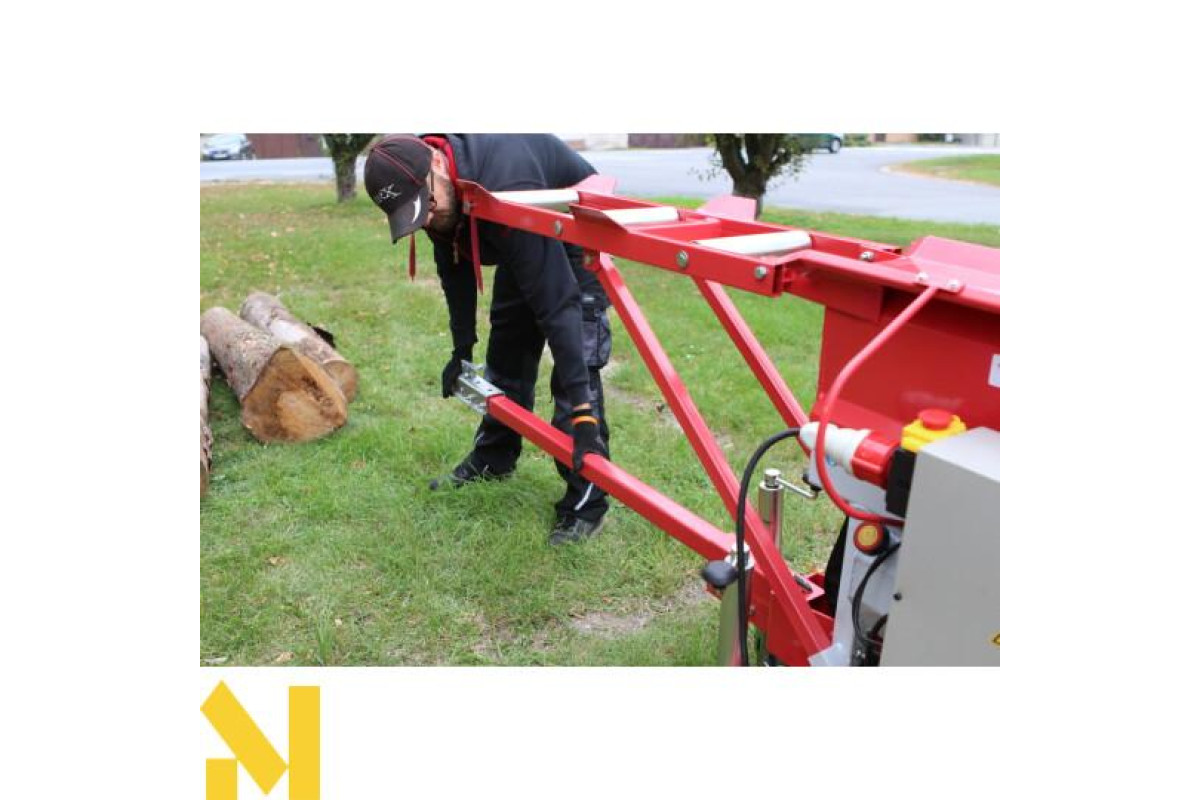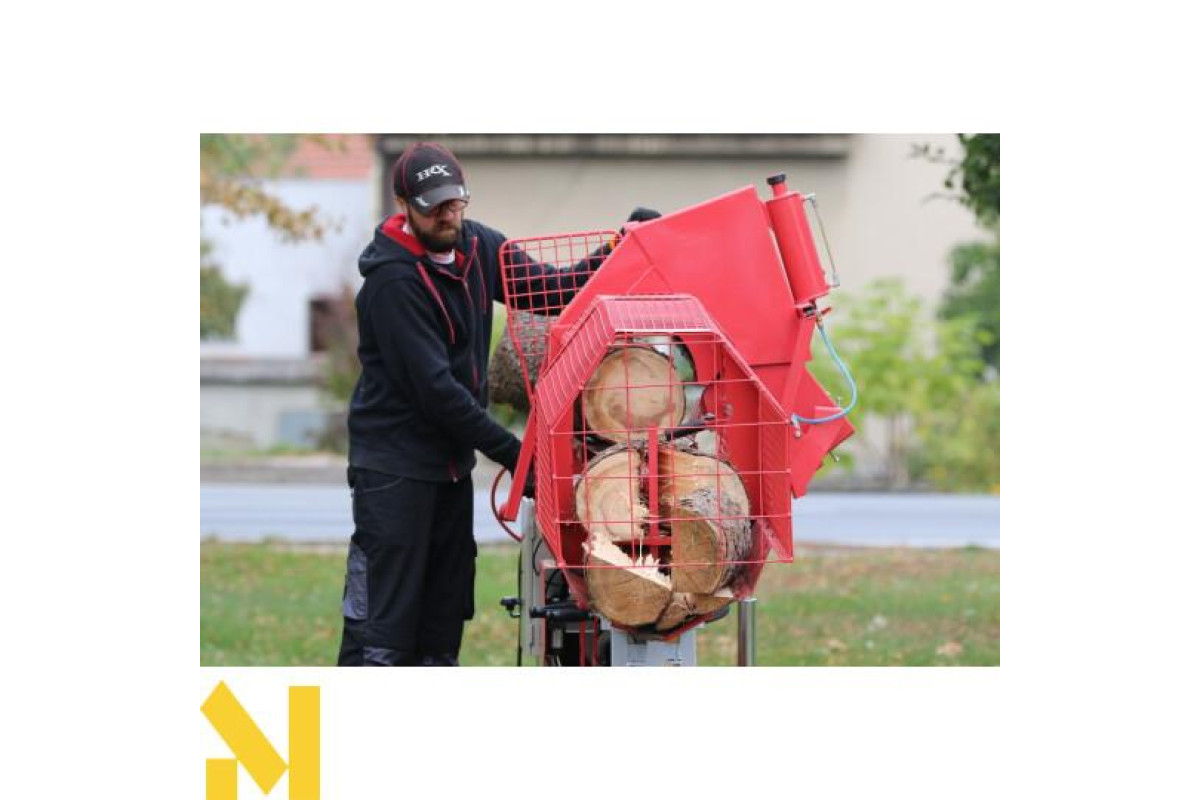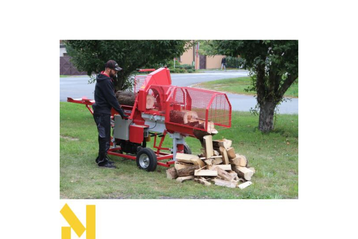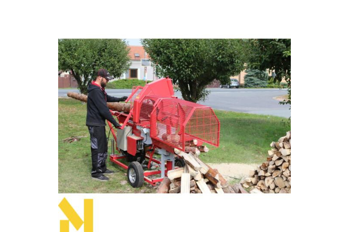 Лінія колки VARIMATIC 300 використовується для швидкої обробки деревини, коли у нас є бензопила та дровокол на одному верстаті.