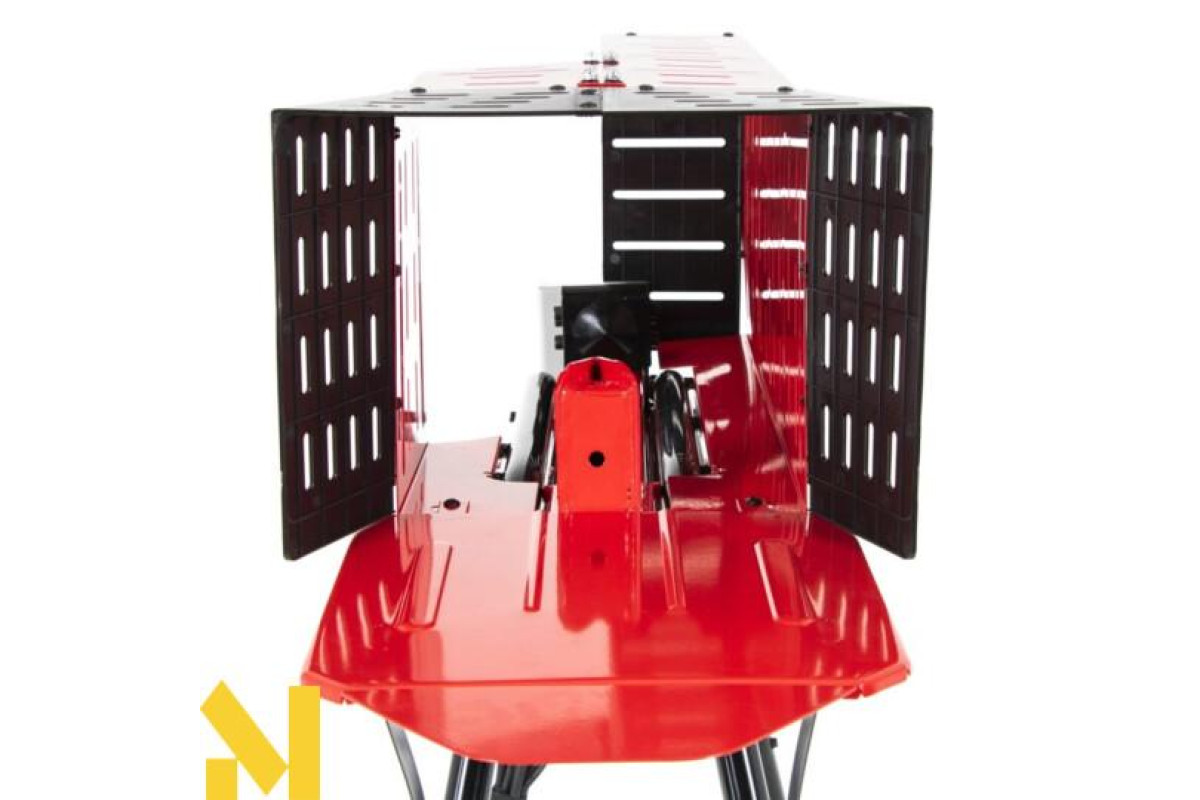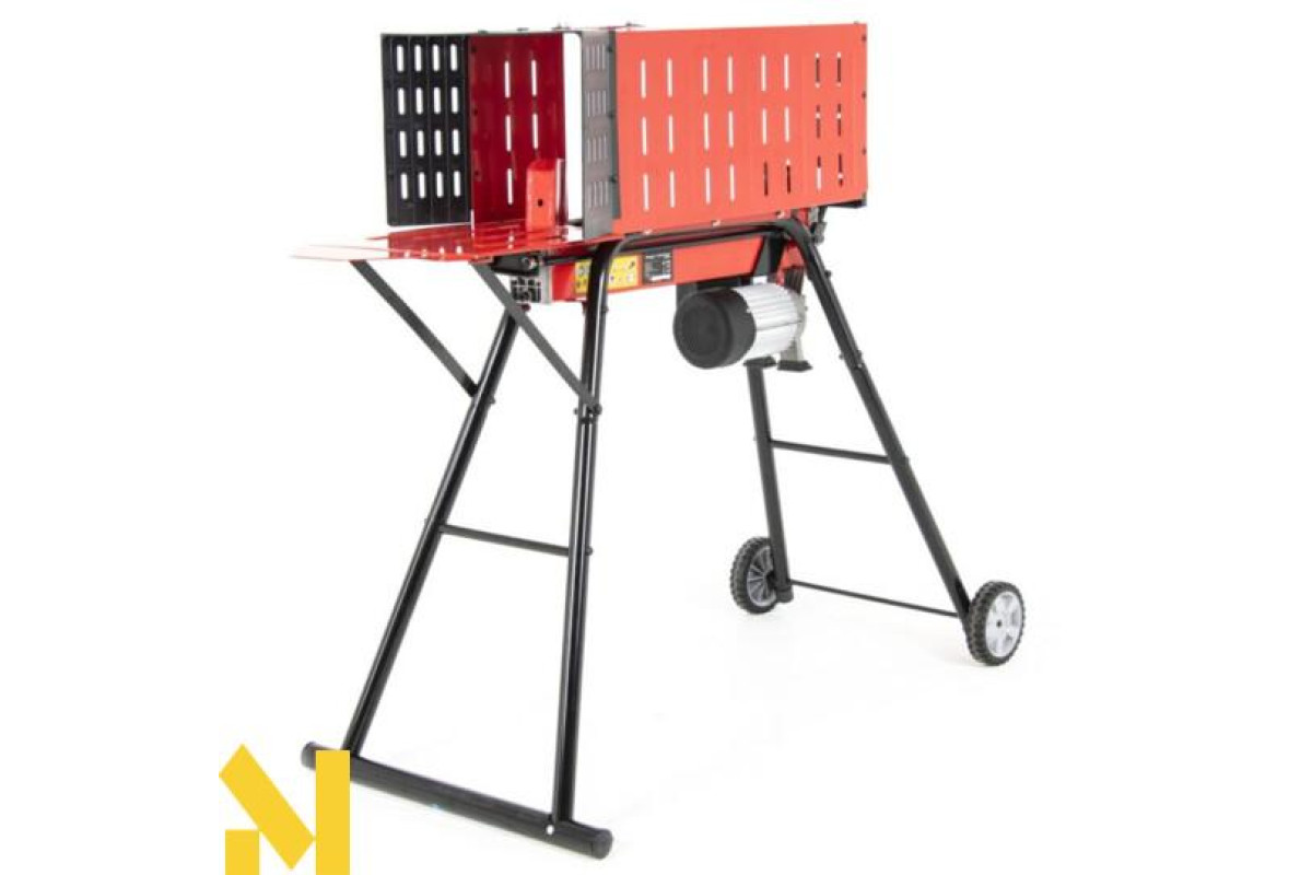 Спліттер оснащений транспортними колесами, які дозволяють легко переміщати пристрій по саду або ділянці. Крім того, в комплект входить робоча підставка, яка піднімає розколювач на зручну робочу висоту, мінімізуючи необхідність нахилятися і підвищуючи комфорт.