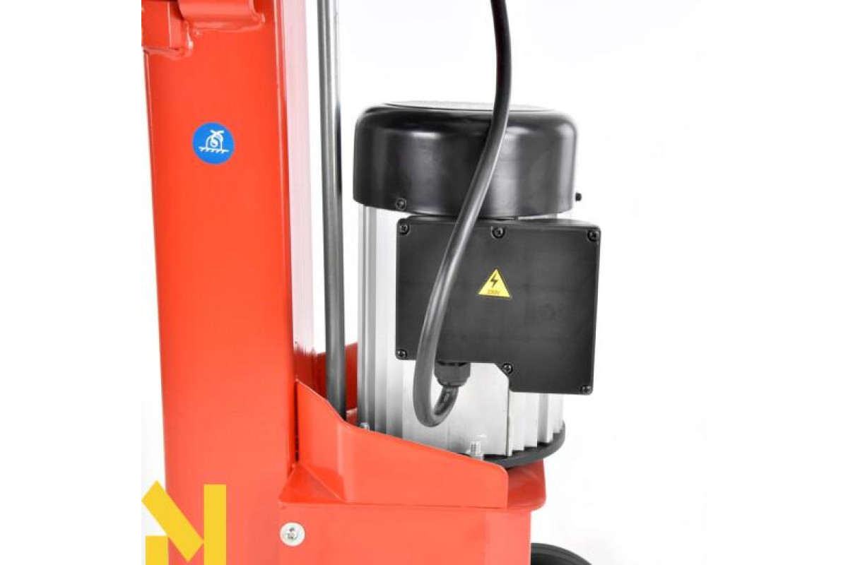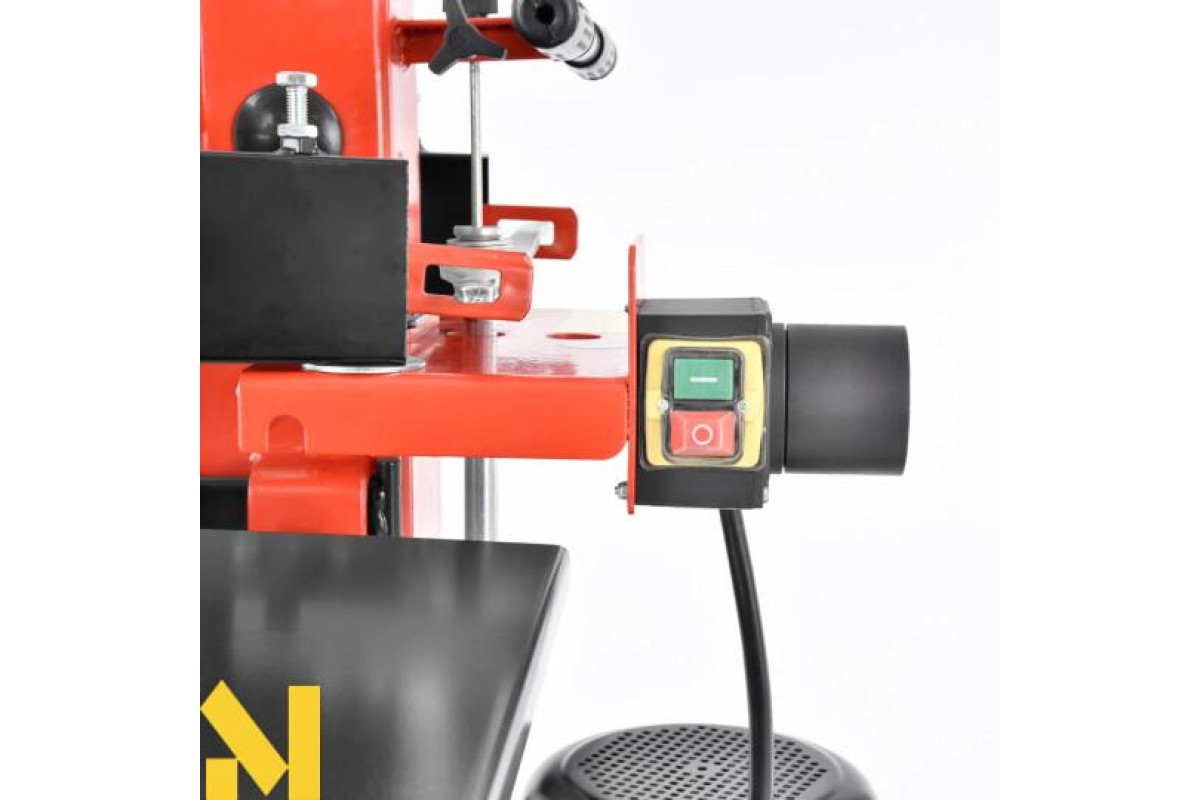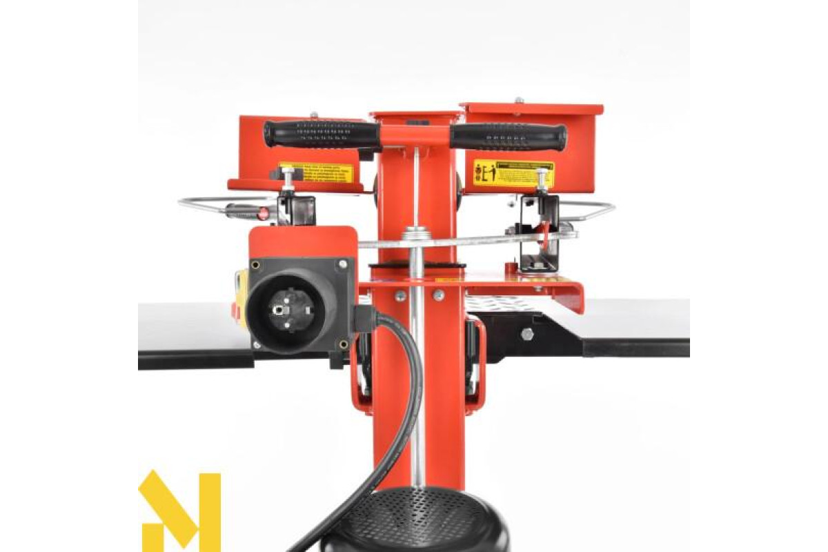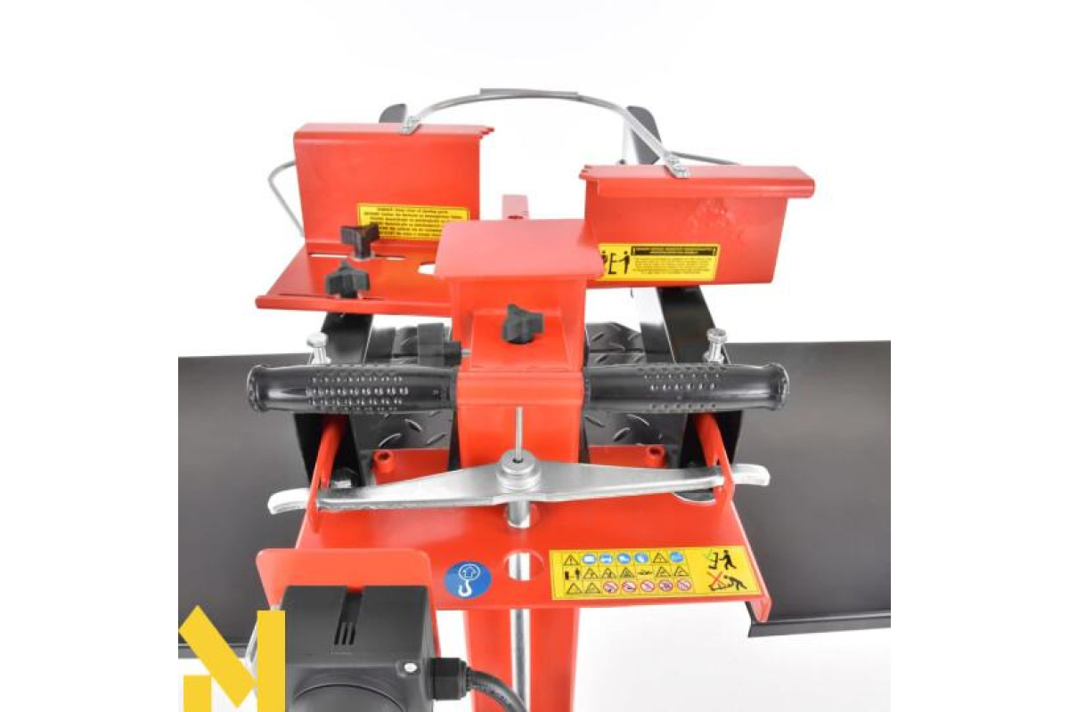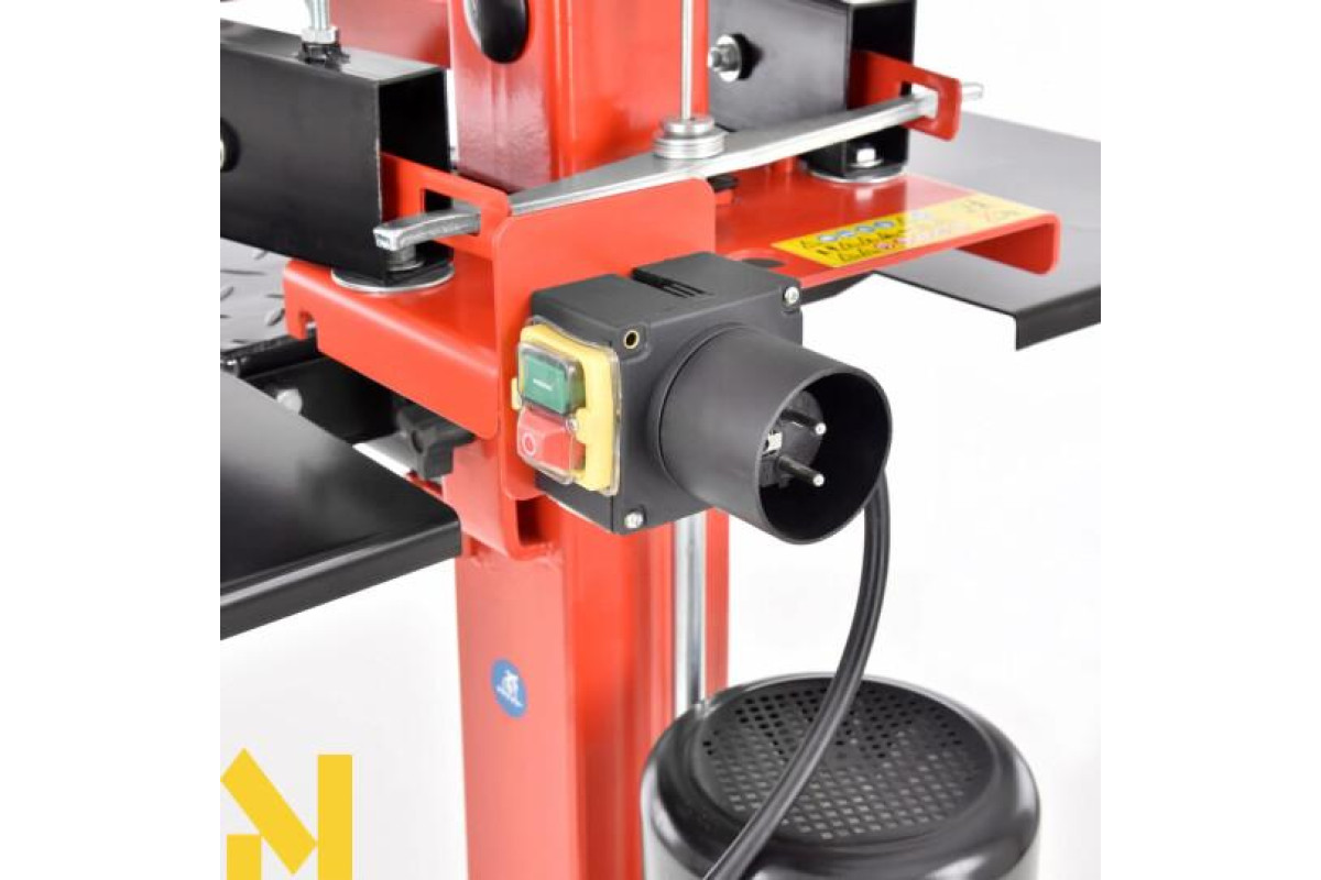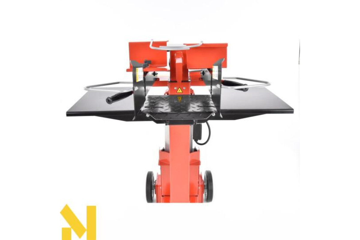 Дровокольного верстат вертикального типу компактний, стійкий в процесі функціонування, його легко обслуговує одна людина, завантажуючи чурбакі на робочу плиту. Міцна рама стійка до ударів, дозволяє колоти важкі поліна.