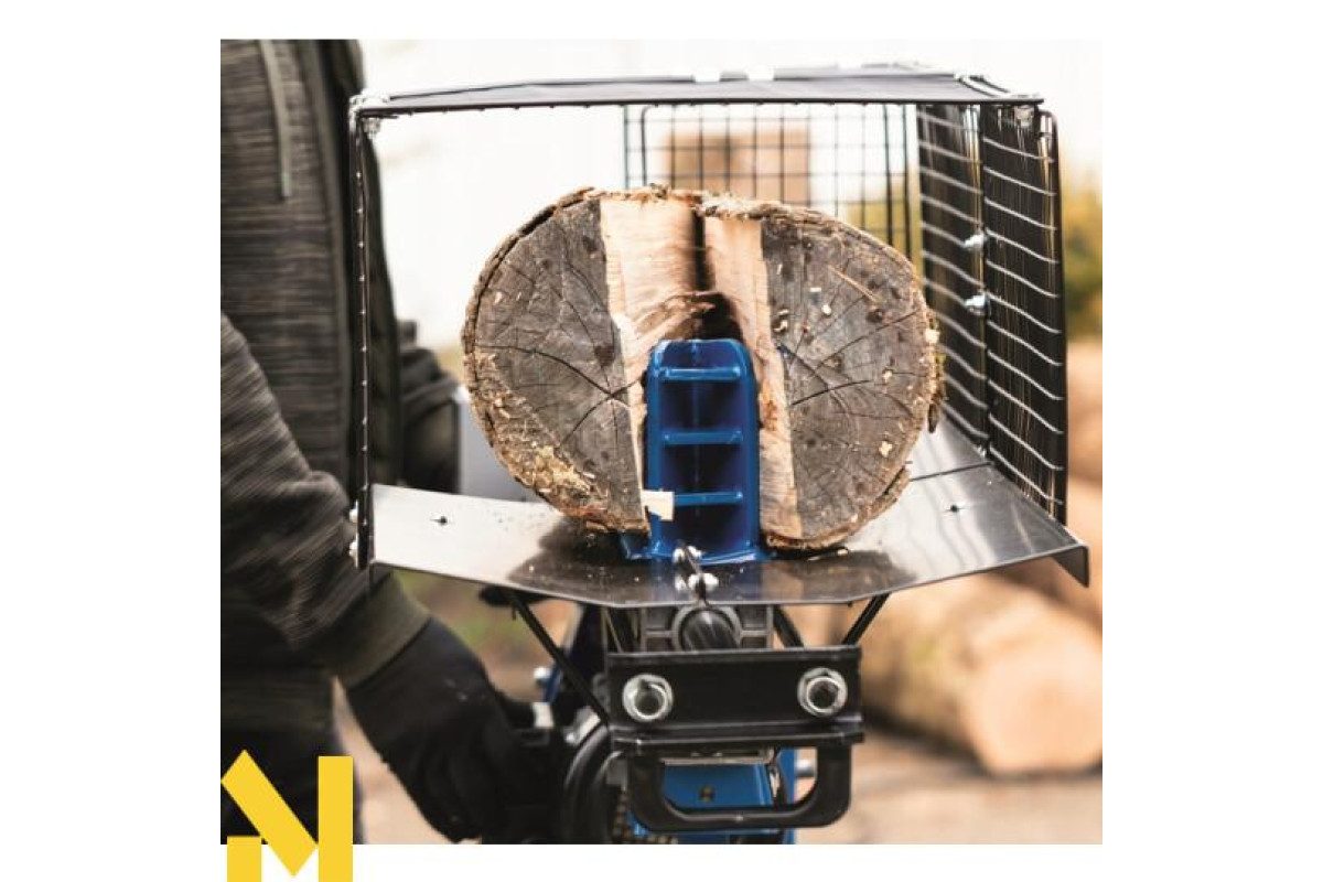 Дровокол HL760LS оснащений захисним каркасом для захисту від розщеплення деревини. Дворучне керування забезпечує додаткову безпеку: ліва рука керує важелем керування, права рука - кнопкою спуску. Відпускання будь-якого з елементів керування негайно зупиняє машину. Відпускання обох елементів керування втягує притискну пластину.