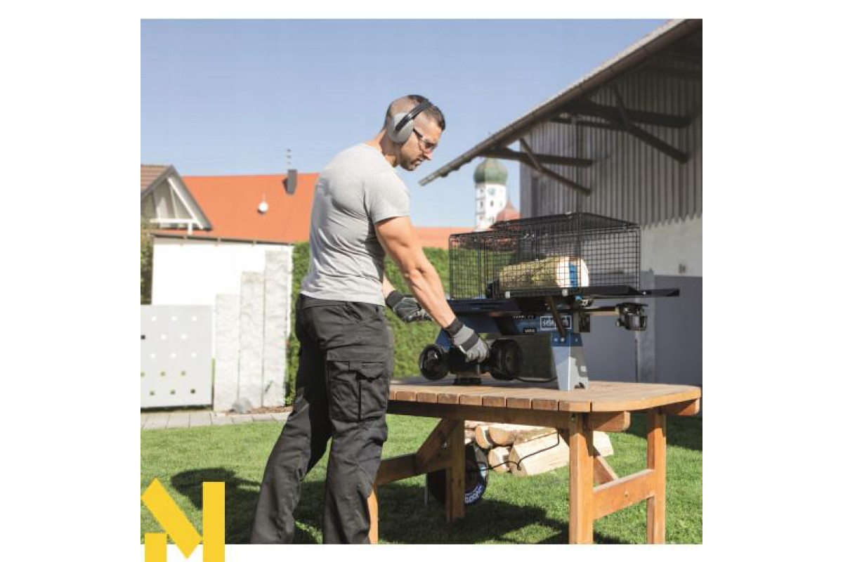 Тим не менш, цей невеликий дровокол не слід недооцінювати. Він оснащений потужним двигуном 2200 Вт із зусиллям розколювання 7 т. Хід розколювання міцного леза регулюється безступінчато. Розміри клина для розколювання становлять 80 x 70 x 126 мм.