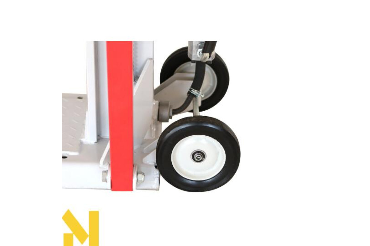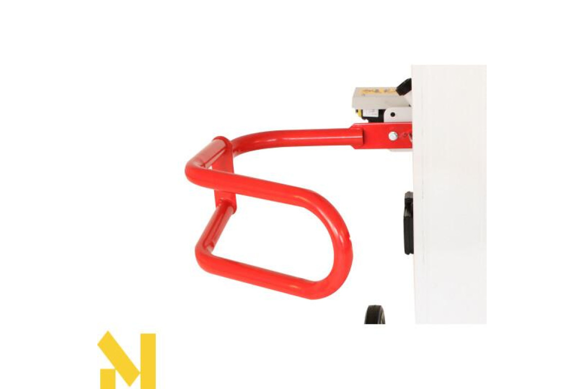 На додаток до стандартного дворучного керування, дровокол оснащений новим запобіжним важелем і транспортним колесом, розташованим поруч із рукоятками, що значно полегшує транспортування дровокол. Лівий важіль керування оснащений пристроєм для забезпечення стійкості колоди.