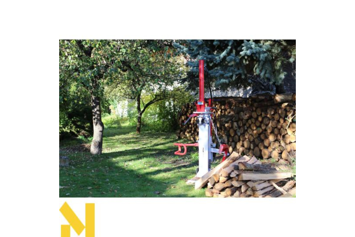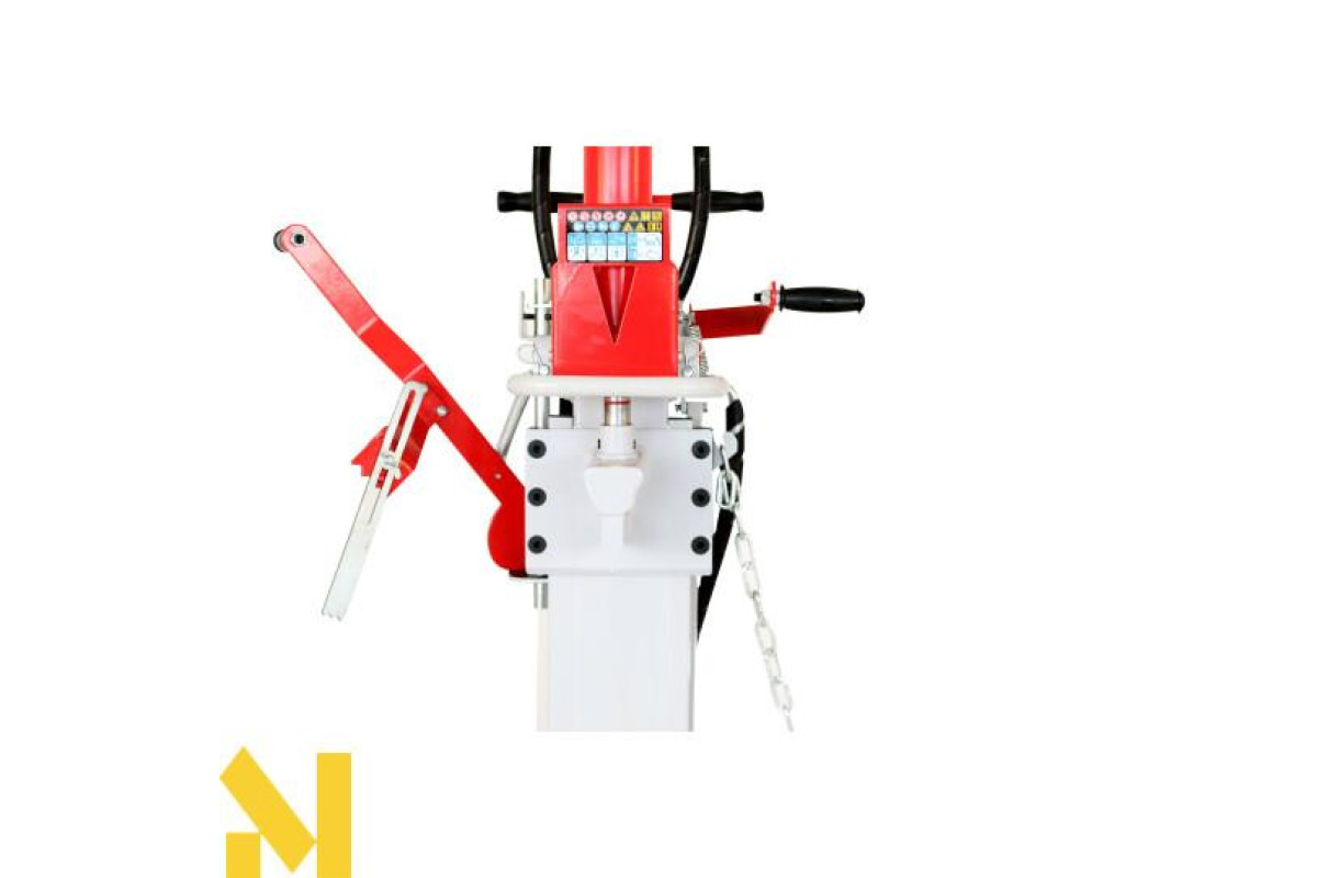 На додаток до стандартного дворучного керування, дровокол оснащений новим запобіжним важелем і транспортним колесом, розташованим поруч із рукоятками, що значно полегшує транспортування дровокол.