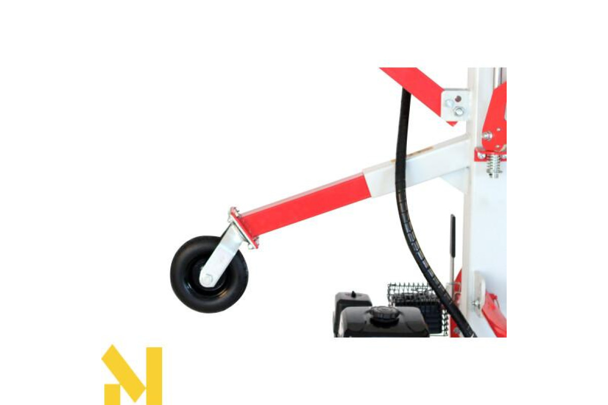Большие надувные колеса, третье транспортное колесо на направляющих ручках, возможность опускания поршня и опускания боковых опор облегчают эксплуатацию и хранение машины.