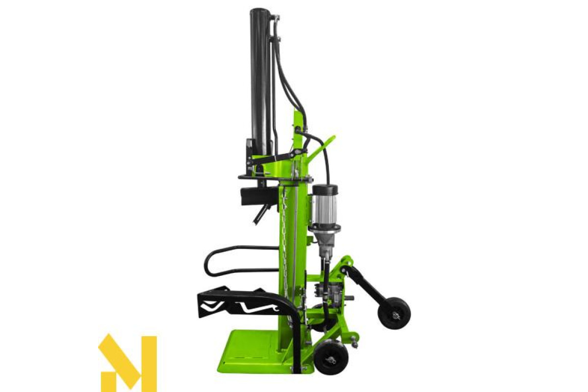 Потужність трифазного двигуна становить 5,5 кВт. Дана модель насоса забезпечує постійну потужність при максимальному тиску, яка може досягати 30 тонн. Стійкі широкі колеса спрощують транспортування дровокола, навіть по нерівній поверхні. Велика площа основи гарантує його стійкість. Дана модель є найпотужнішою з усіх дровоколів.