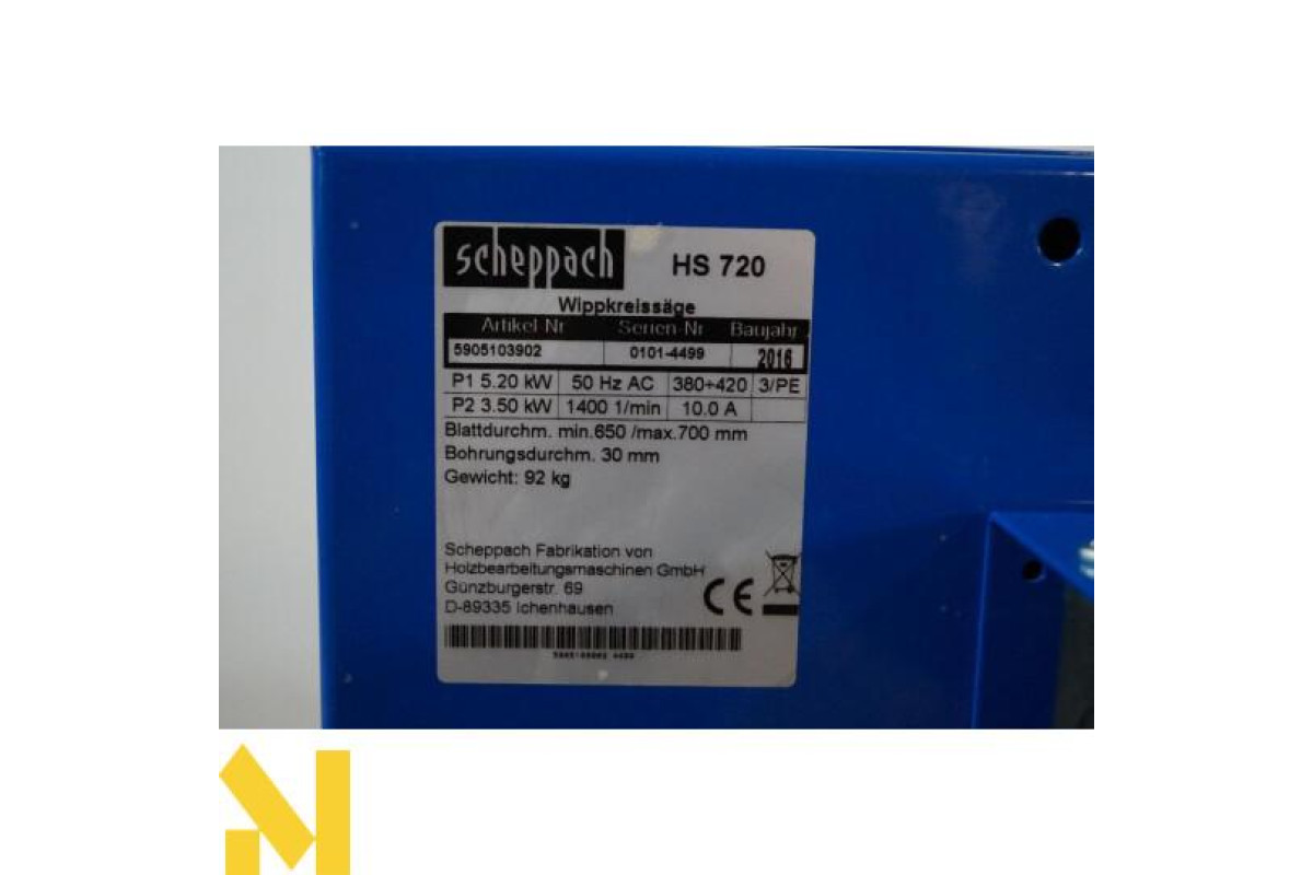 Дроворiз Scheppach HS 720 працює від електричної мережі 230 Вольт. За допомогою цієї дискової пили ви швидко впораєтеся з найважчою роботою по розпилу габаритних колод.