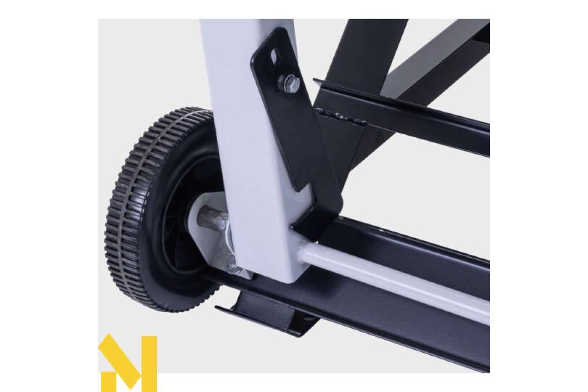 HS730 постачається повністю зібраним та готовим до використання. Пилку можна легко транспортувати до місця призначення за допомогою колісного пристрою. Завдяки фіксатору-гойдалці, пилку також можна зберігати компактно.
