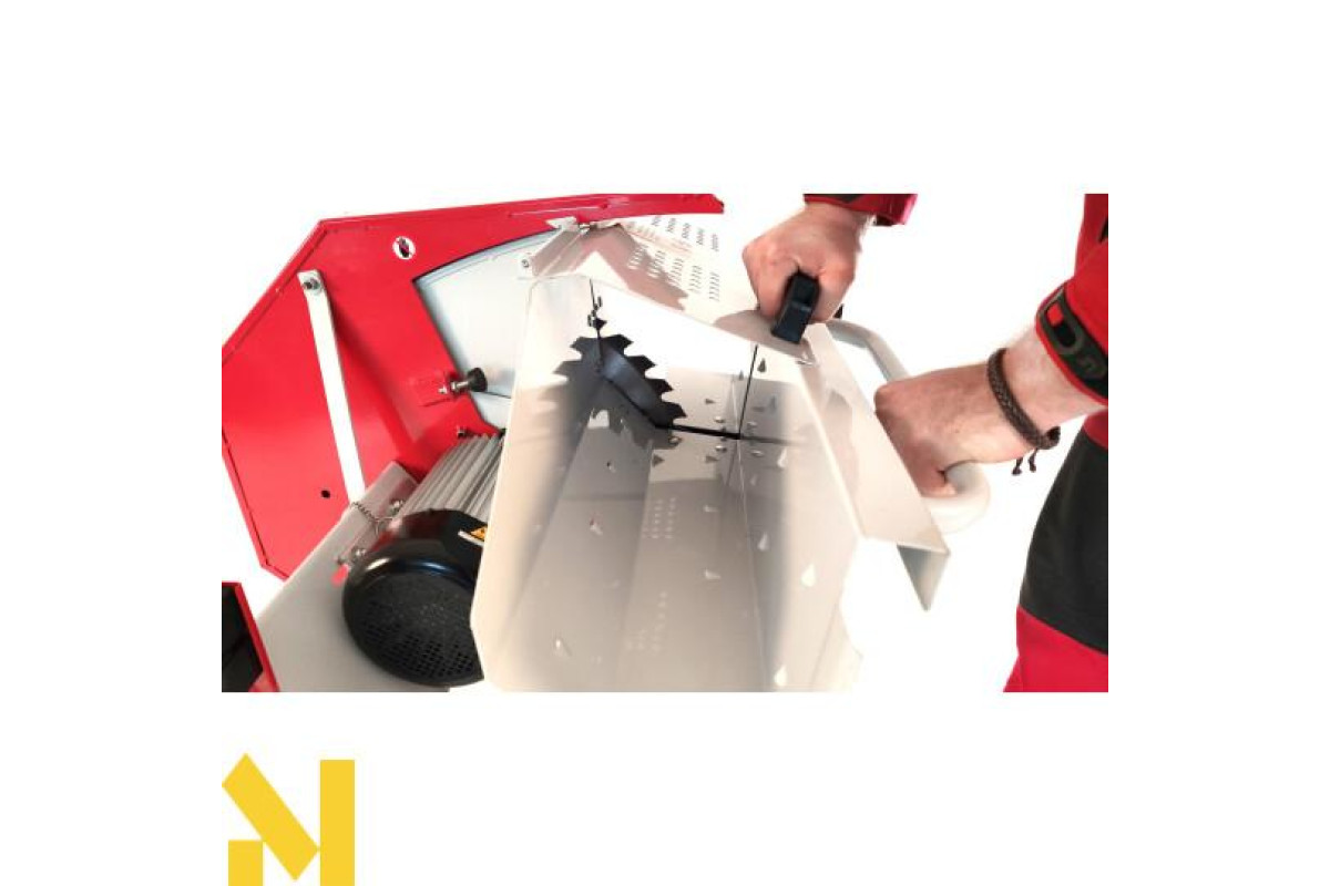 Похила пилка має міцну конструкцію і потужний електродвигун 230 В 3000 Вт, який безпосередньо приводить в рух пиляльний диск. Прямий привід можливий завдяки спеціально розробленій конструкції електродвигуна та кріплення на валу. Конструкція стійки та рухомого захисного кожуха, що закриває диск під час різання, забезпечує безпеку оператора верстата. У люльці є спеціальні виступи, що перешкоджають прокручування колоди. Циркулярна пилка оснащена колесами для транспортування для зручного поводження і транспортування.