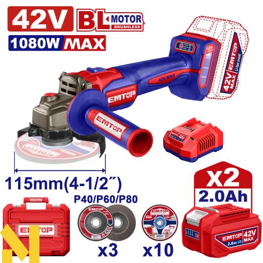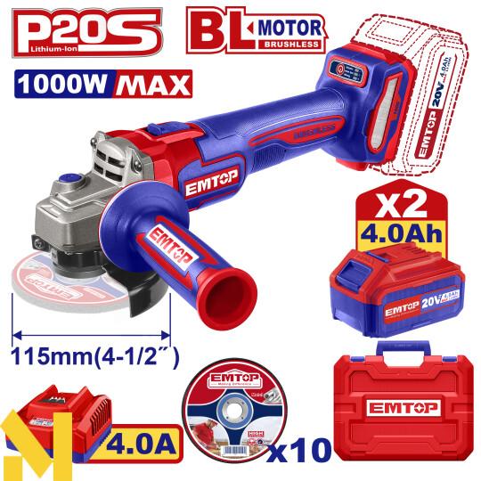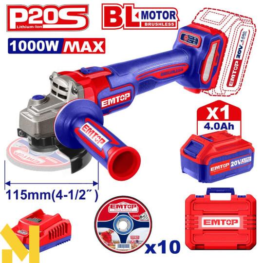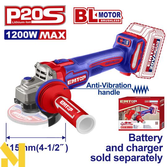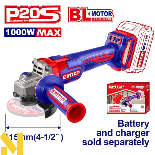 Болгарка (кутова шліфмашина) акумуляторна EMTOP ELAG212025 (без АКБ та ЗП)