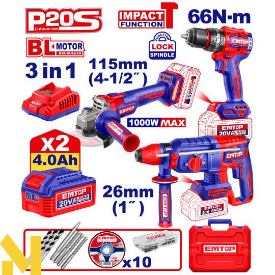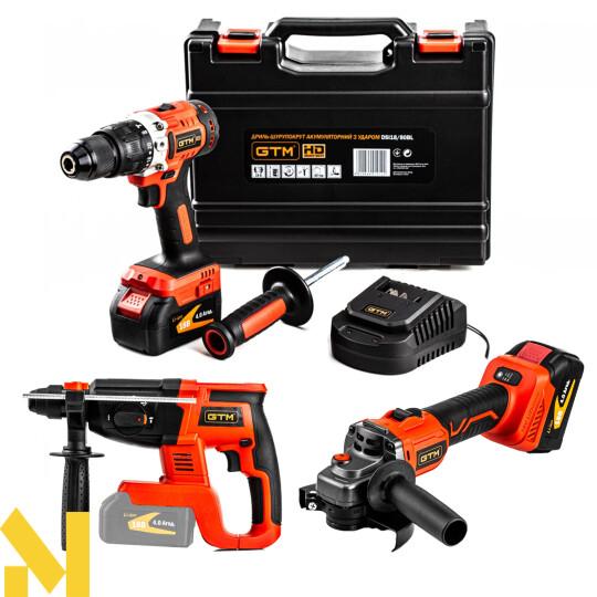 Набір інструментів акумуляторних GTM DSI18/80BL + AGC18/125BL + RHC18/22BL