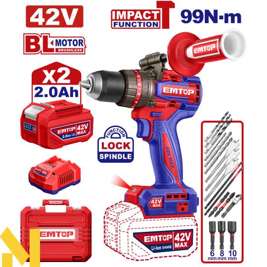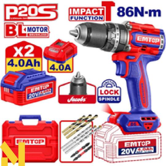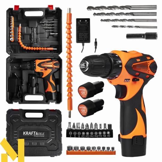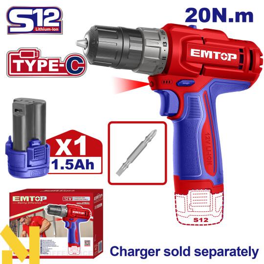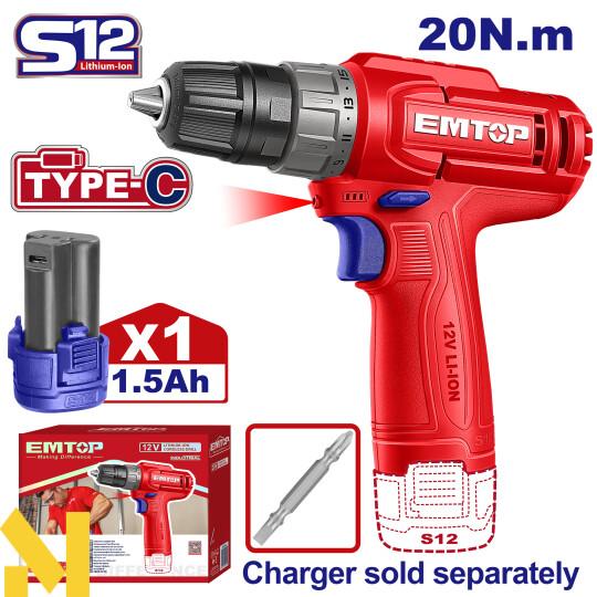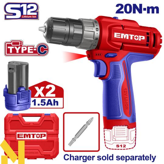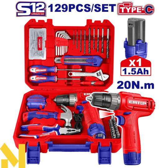 Дриль-шуруповерт акумуляторний EMTOP EEDK12901 + набір інструментів 129 шт.