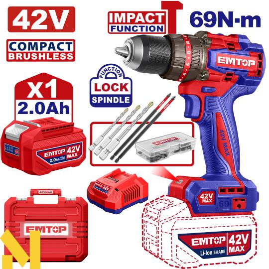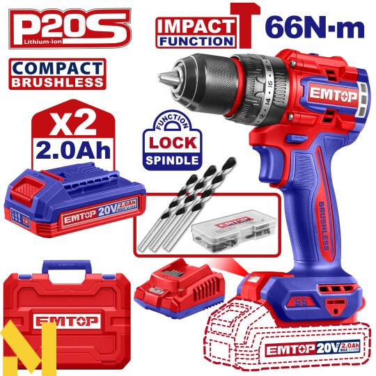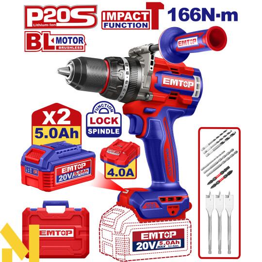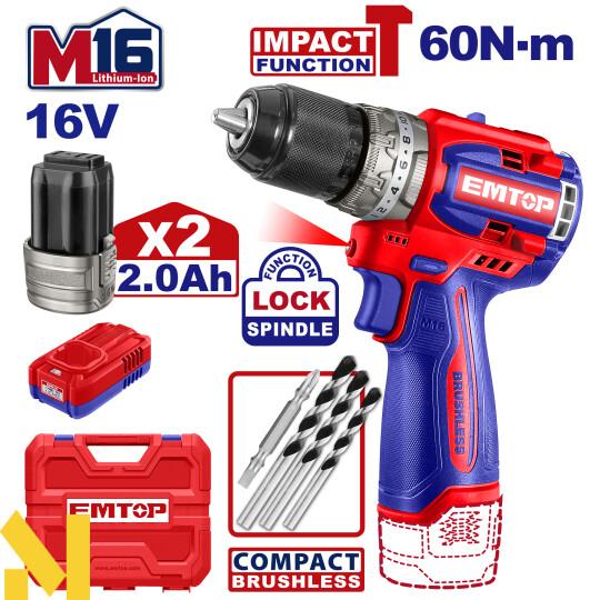Дриль-шуруповерт акумуляторний EMTOP EEDK16601+ набір інструментів 166 шт.
