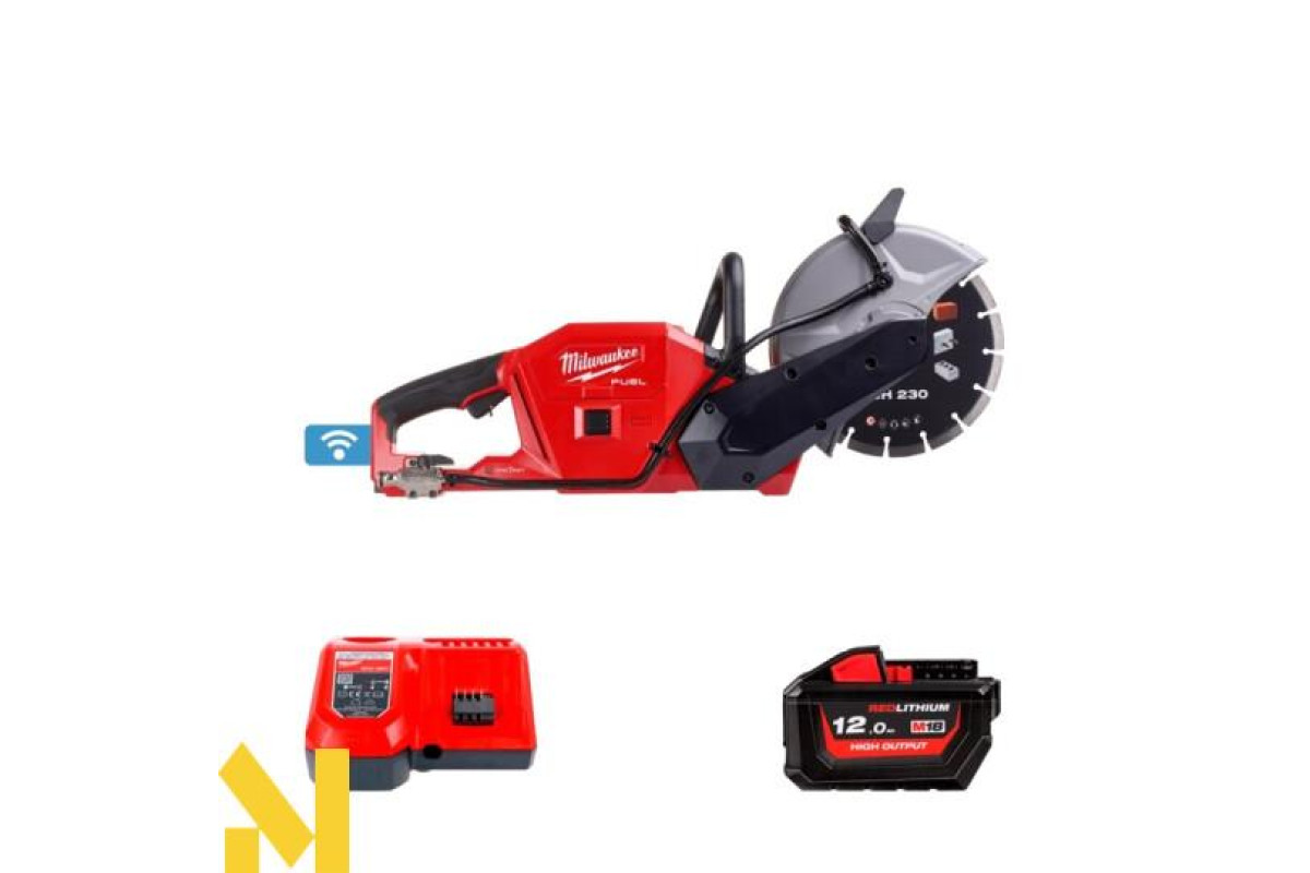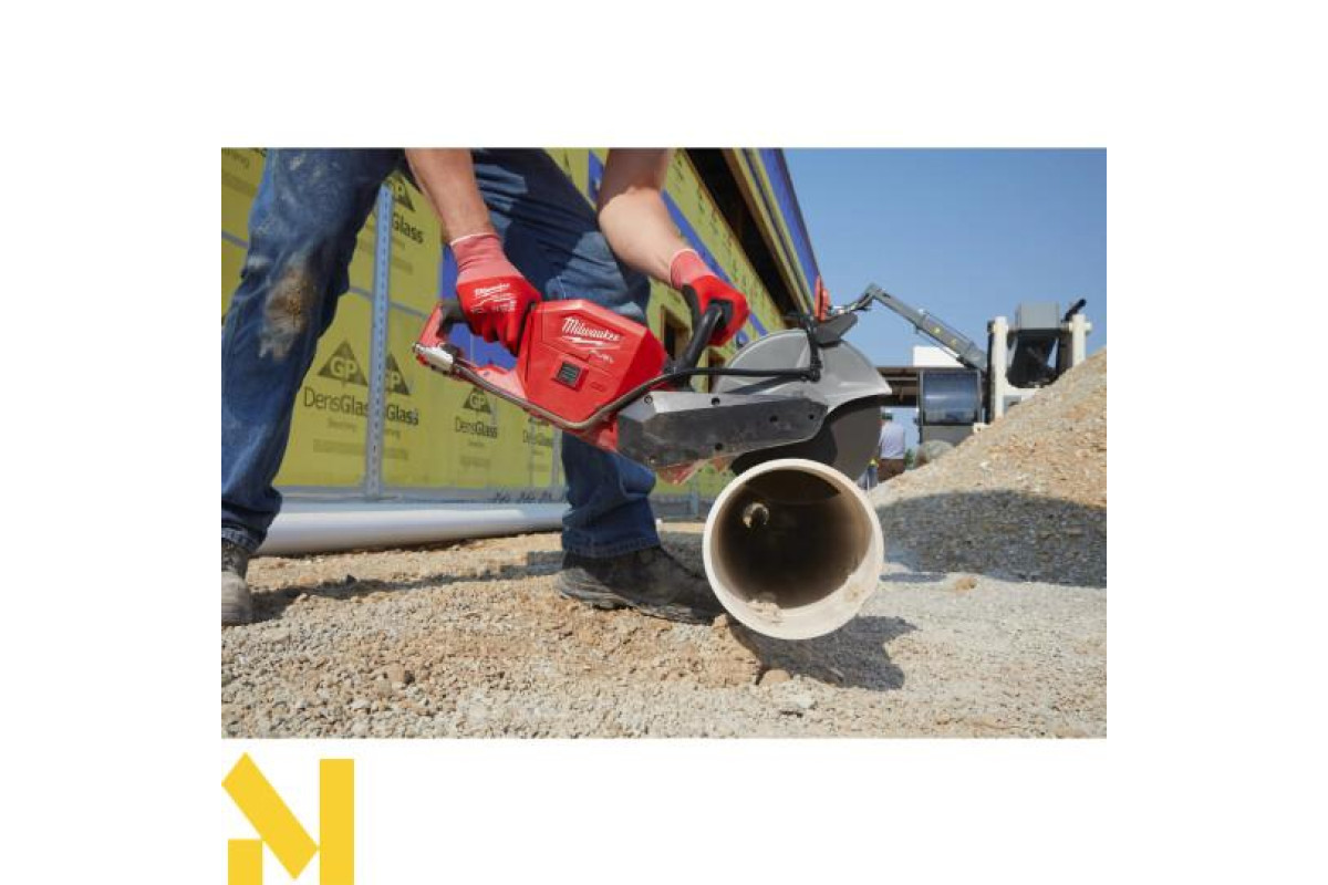 Перша 18 В акумуляторна відрізна машина 230 мм. Забезпечує достатню потужність для різання армованого бетону. На 50% легше бензинових аналогів