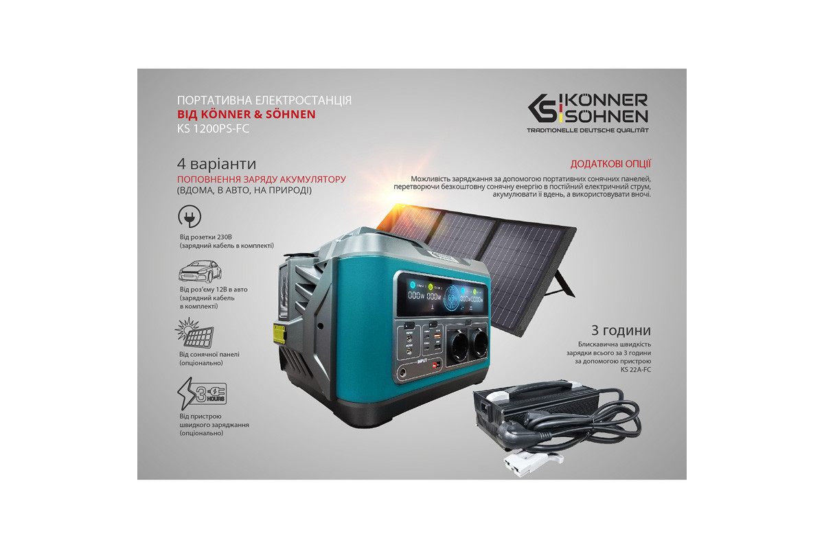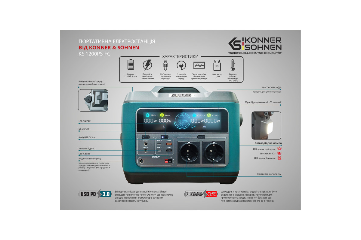 Призначення електростанції портативної Konner&Sohnen KS 1200PS-FC: