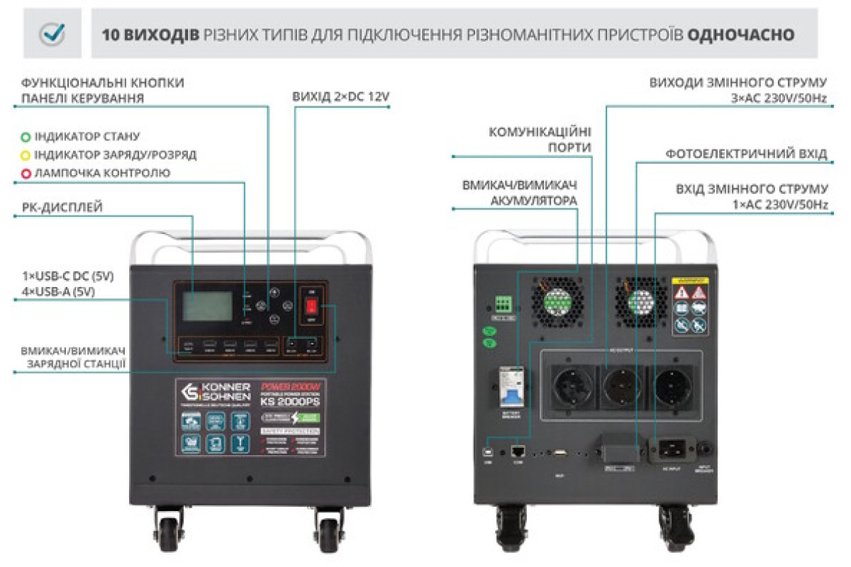- Вихід USB Type-A4 порти (5 В)
