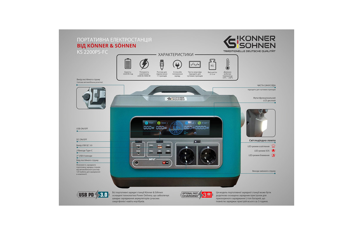 Особливості електростанції портативної Konner&Sohnen KS 2200PS-FC