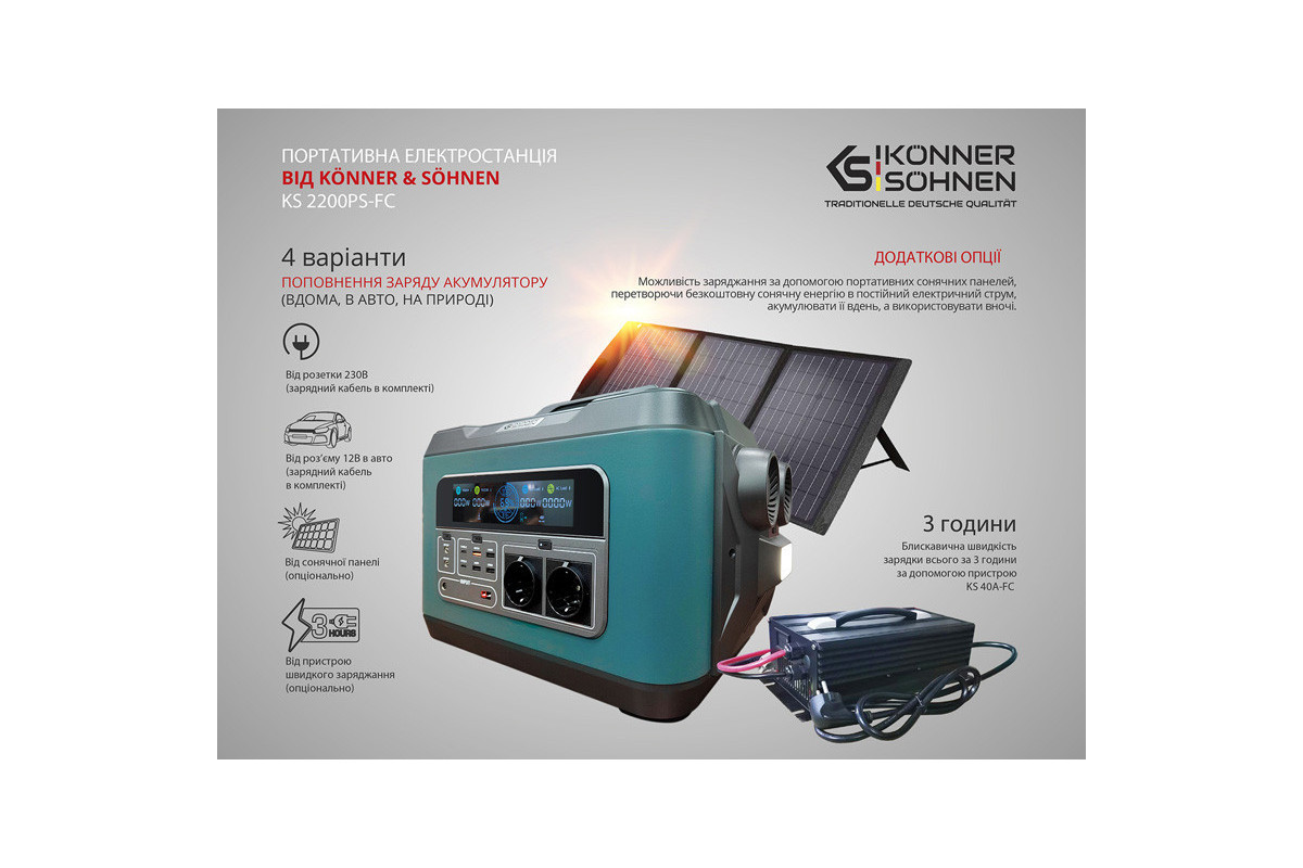 Призначення електростанції портативної Konner&Sohnen KS 2200PS-FC: