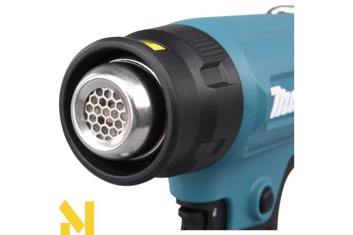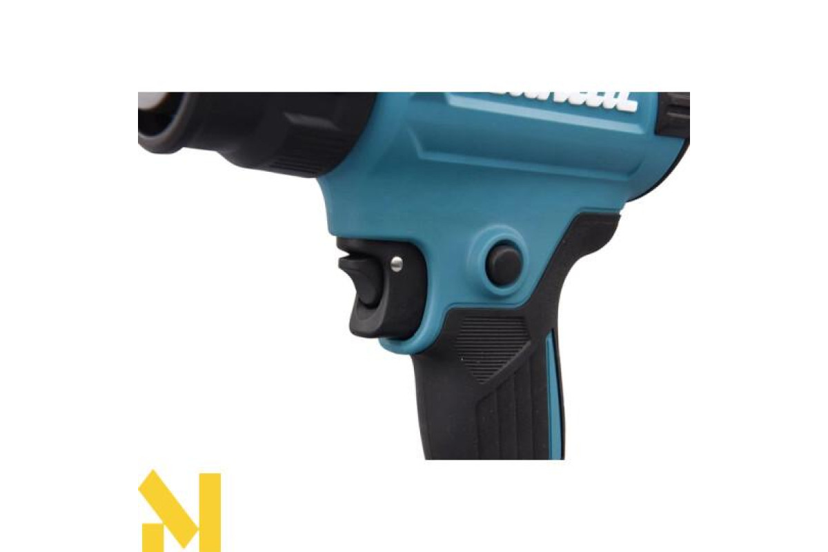 Крім того, він має блокування для запобігання випадковому запуску, функцію антиперезапуску та запобіжник від перевантаження. Фен має діаметр сопла 34.5 мм та світлодіодне підсвічування робочої зони з функцією затримки вигорання: