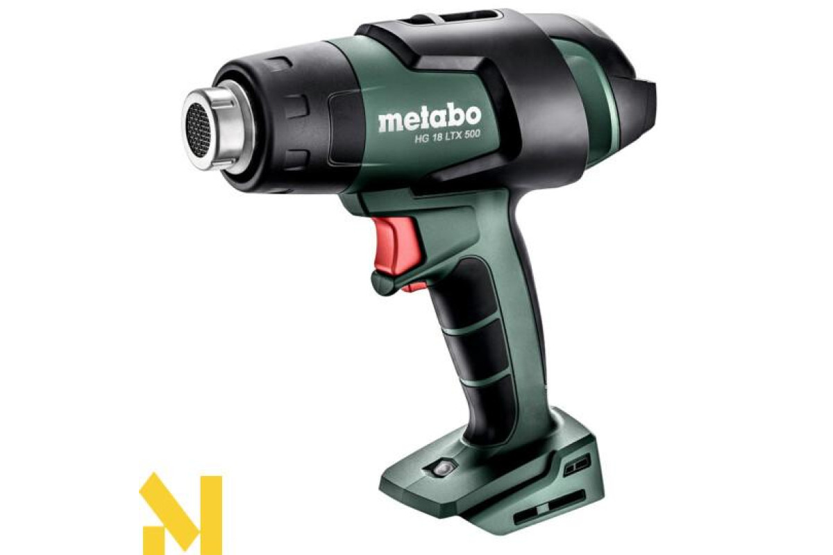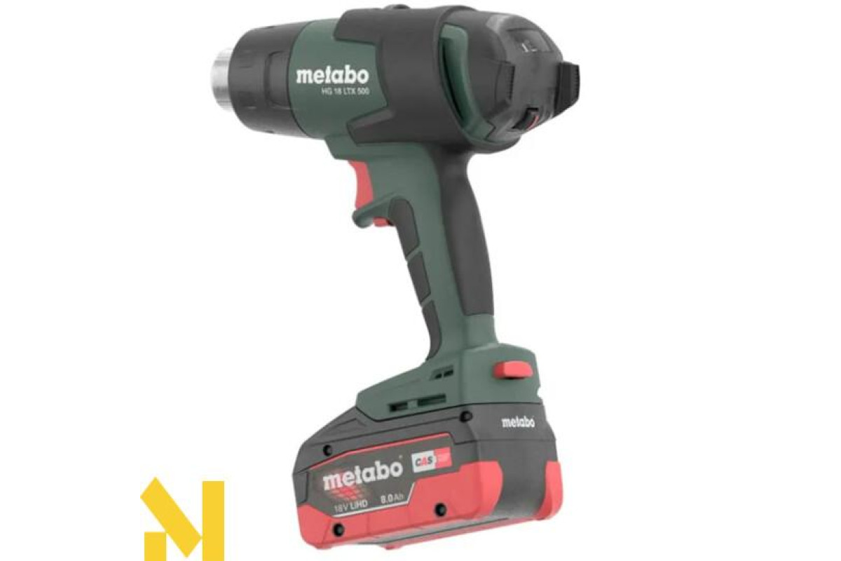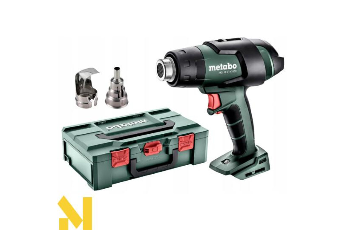 Акумуляторний термофен Metabo HG 18 LTX 500 Каркас MetaBox поставляеться з двома насадками і кейсом MetaBox (без зарядного пристрою і акумуляторних блоків).