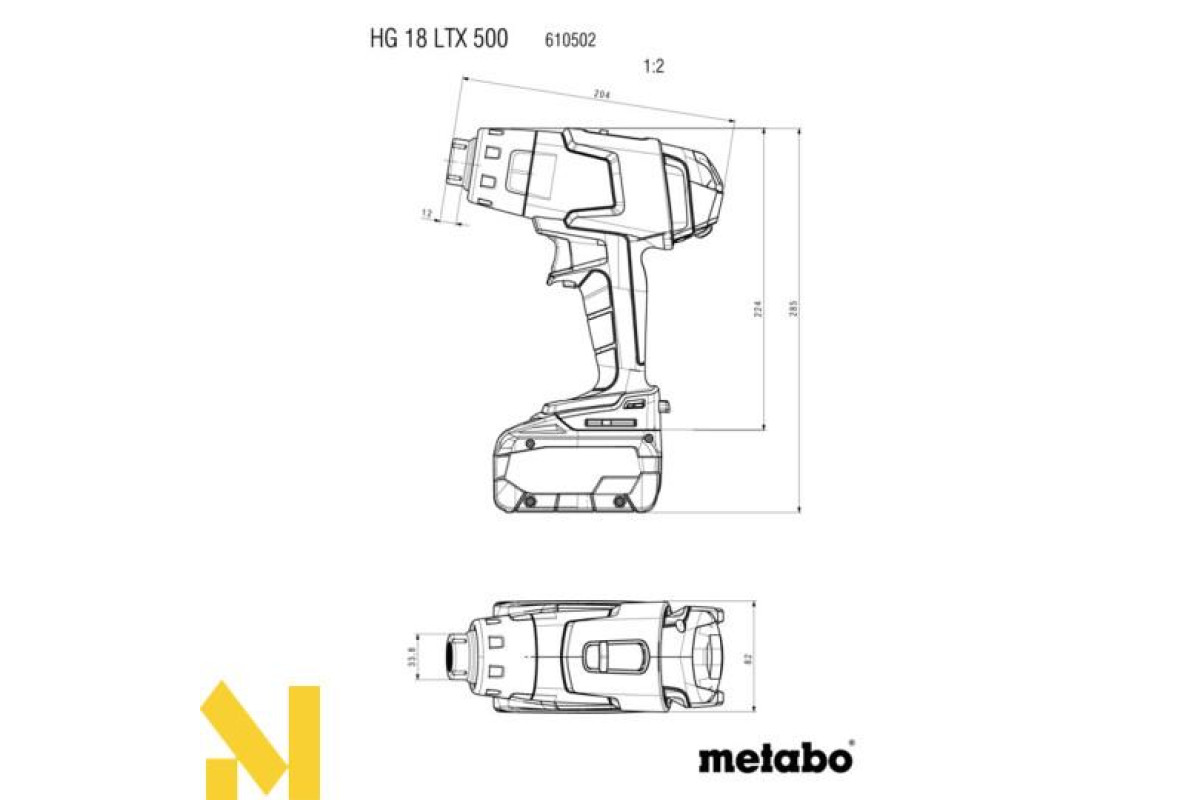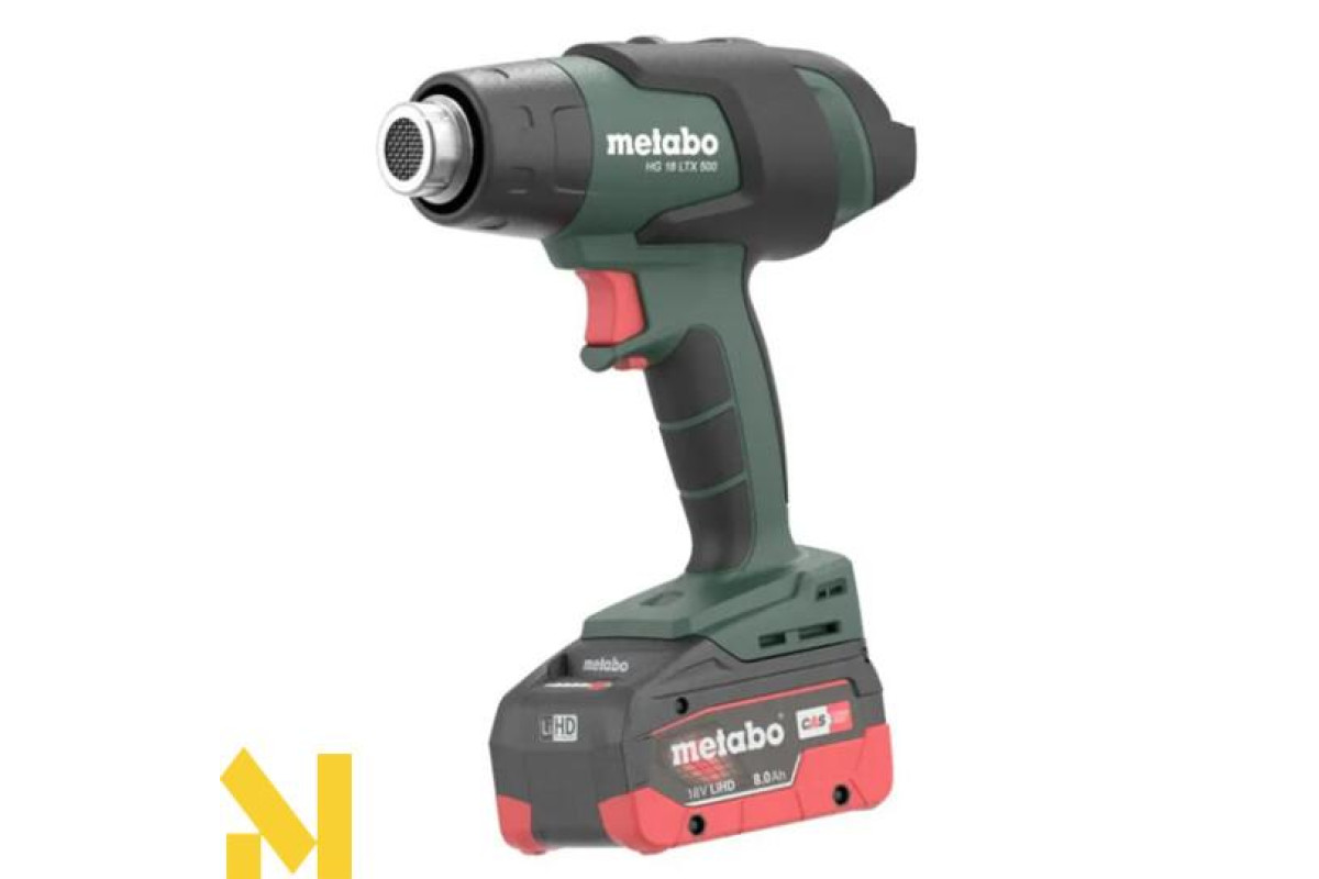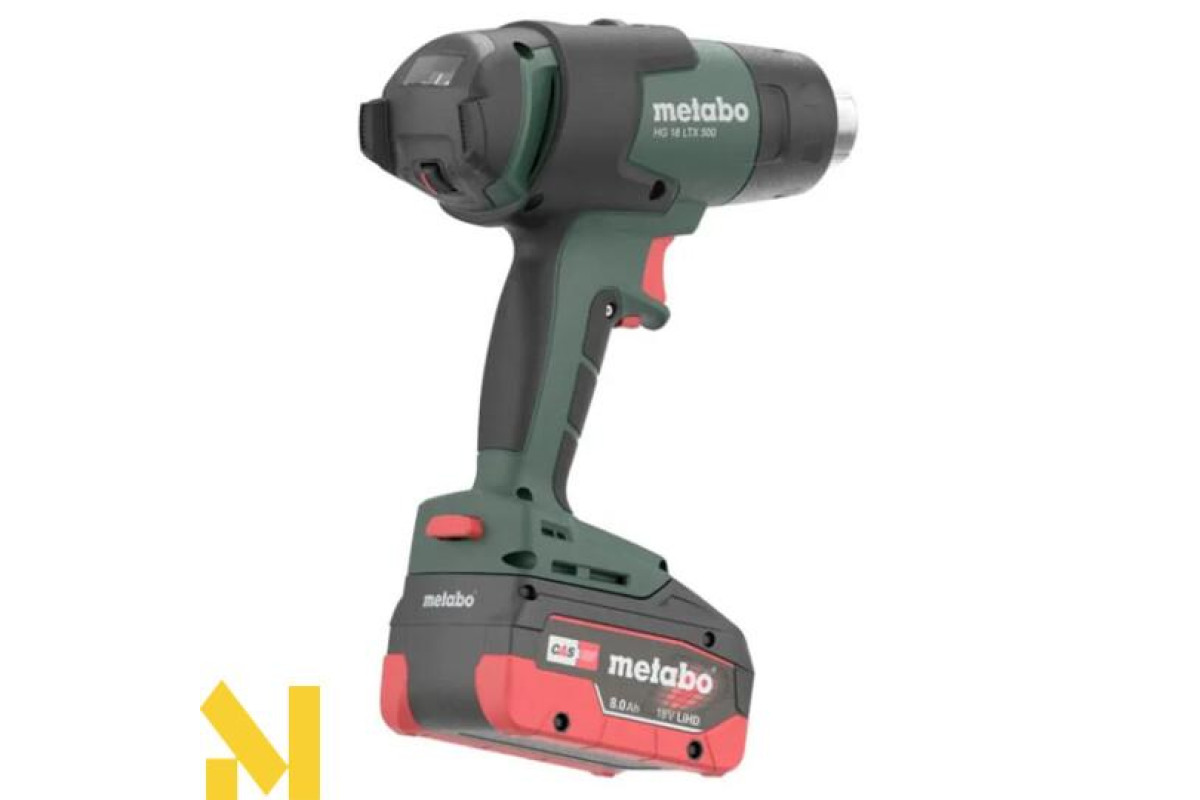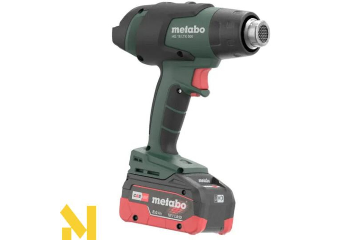 Акумуляторний термофен Metabo HG 18 LTX 500 Каркас MetaBox поставляеться з двома насадками і кейсом MetaBox (без зарядного пристрою і акумуляторних блоків).