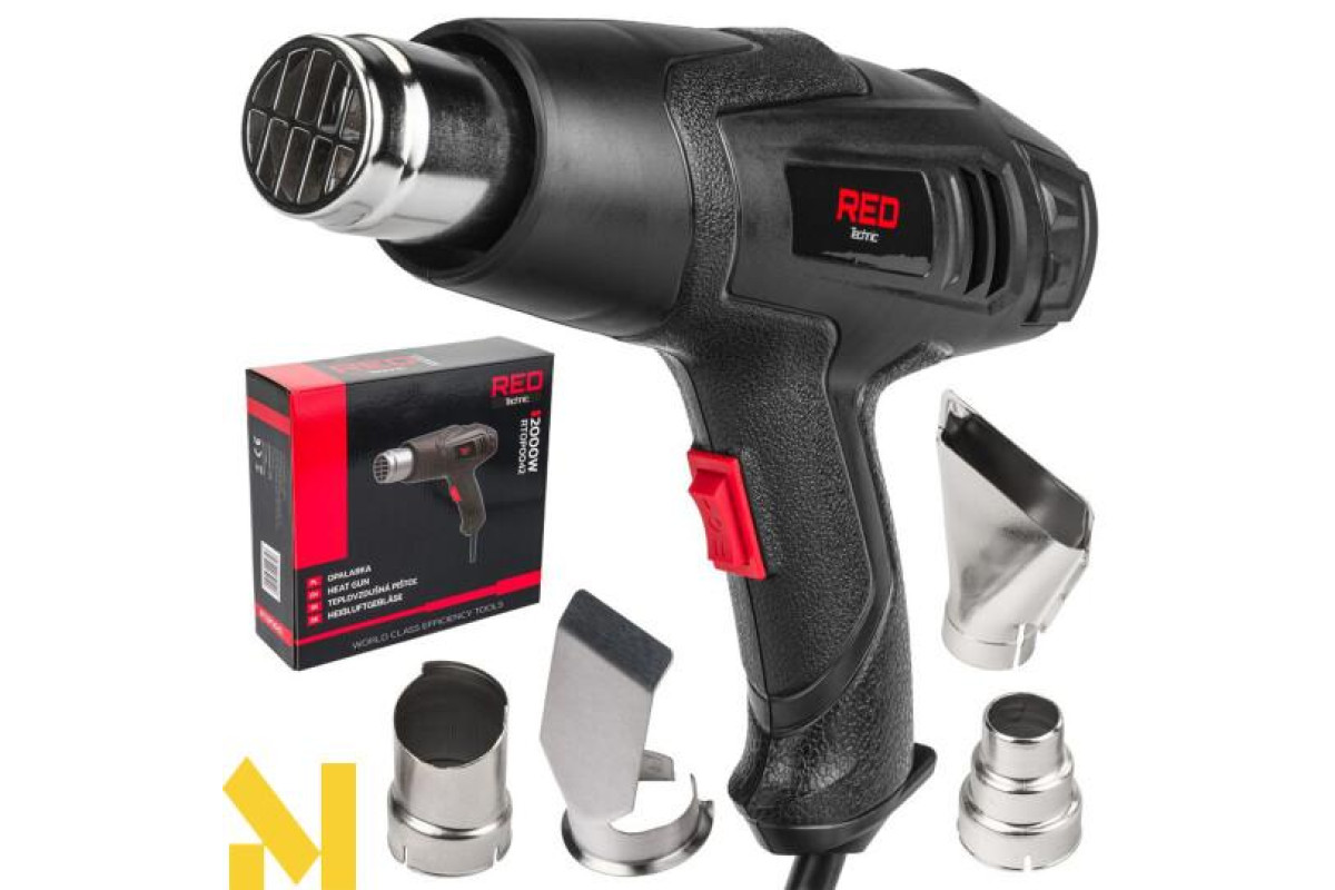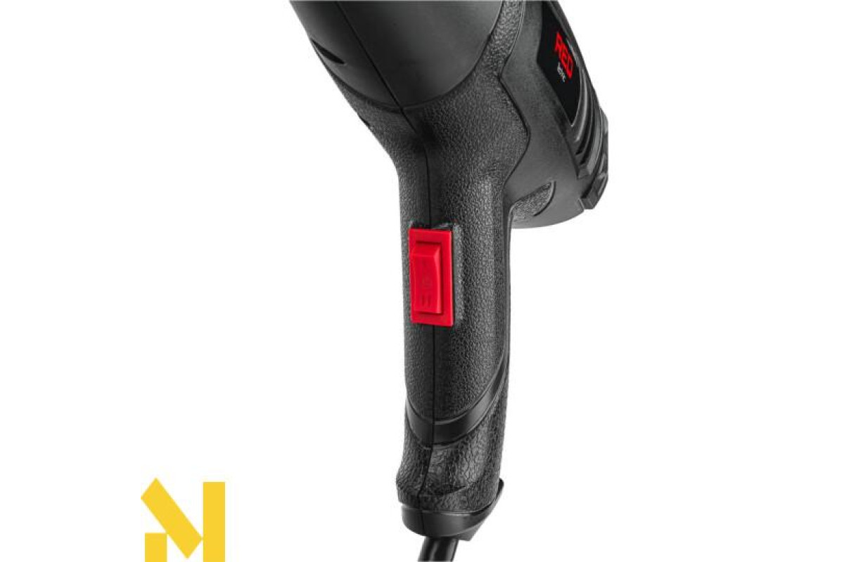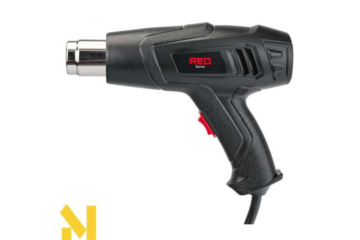 Високоякісний електричний фен RED TECHNIC оснащений електродвигуном потужністю 2000 Вт, що забезпечує температуру 600°C. Пристрій має 2 передачі, що дозволяють вибрати 2 рівні температури обдування та потік повітря.