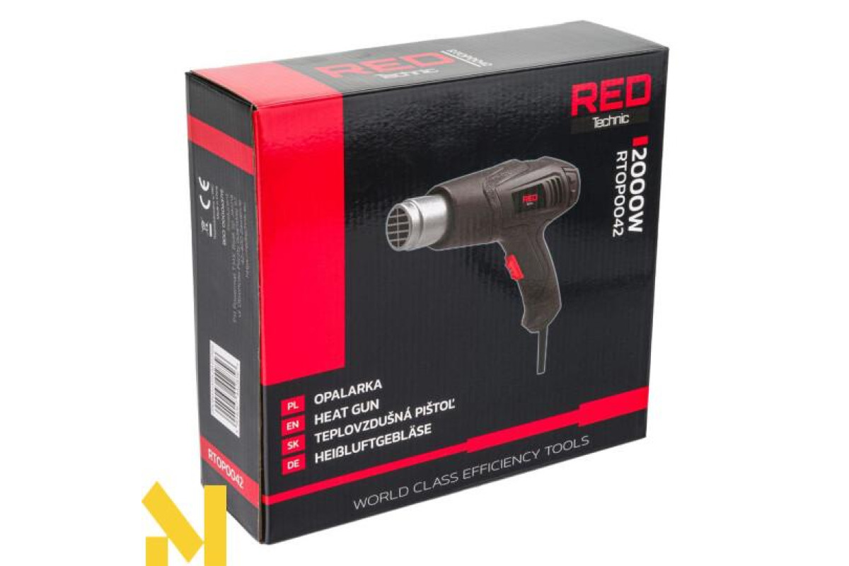 Фен RED TECHNIC - ідеальний інструмент для любителів, професіоналів і майстрів, відмінно підходить для багатьох застосувань. Потужність 2000 Вт можна регулювати вручну за допомогою 2 налаштувань температури та повітряного потоку.