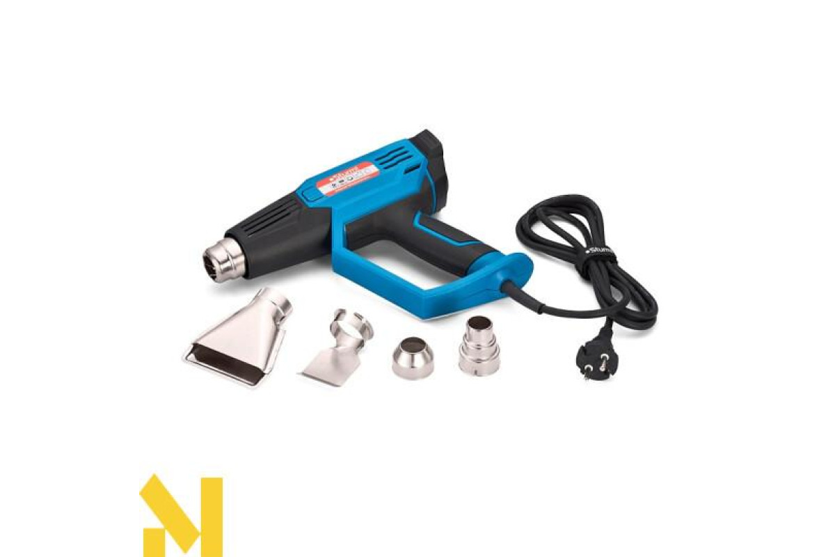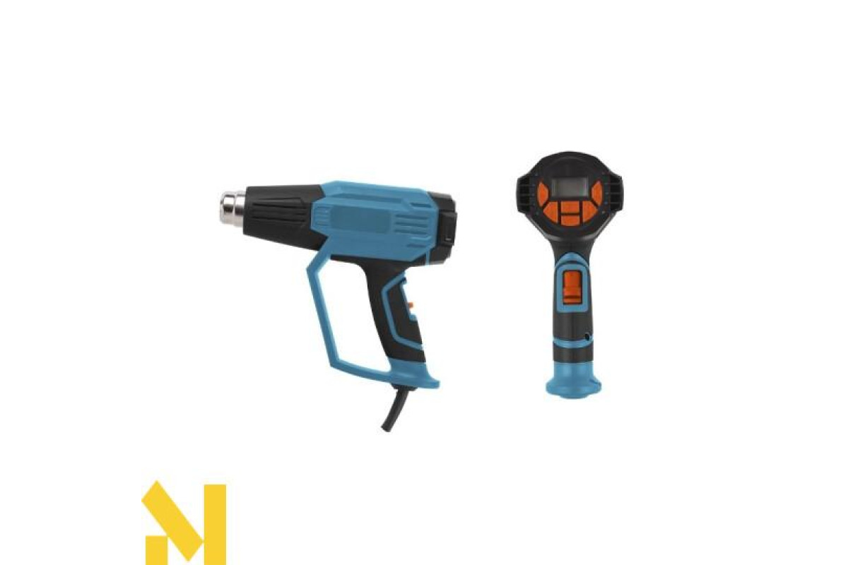 Максимальна потужність - 2000 Вт. Крім того, електроінструмент має подвійну ізоляцію, тому не вимагає заземлення. Основні деталі виконані із стійкого металу, а корпус з високоякісної термостійкої пластмаси. Інструмент стійкий до зносу і прослужить тривалий час. Цифровий дисплей дозволяє контролювати температуру і інтенсивність потоку повітря. Гумова ручка і невелика вага пристрою сприяють комфортному використанню інструменту без навантаження на руки оператора.Для забезпечення різноманітних варіантів застосування в комплекті інструменту передбачені зручні спеціалізовані насадки: