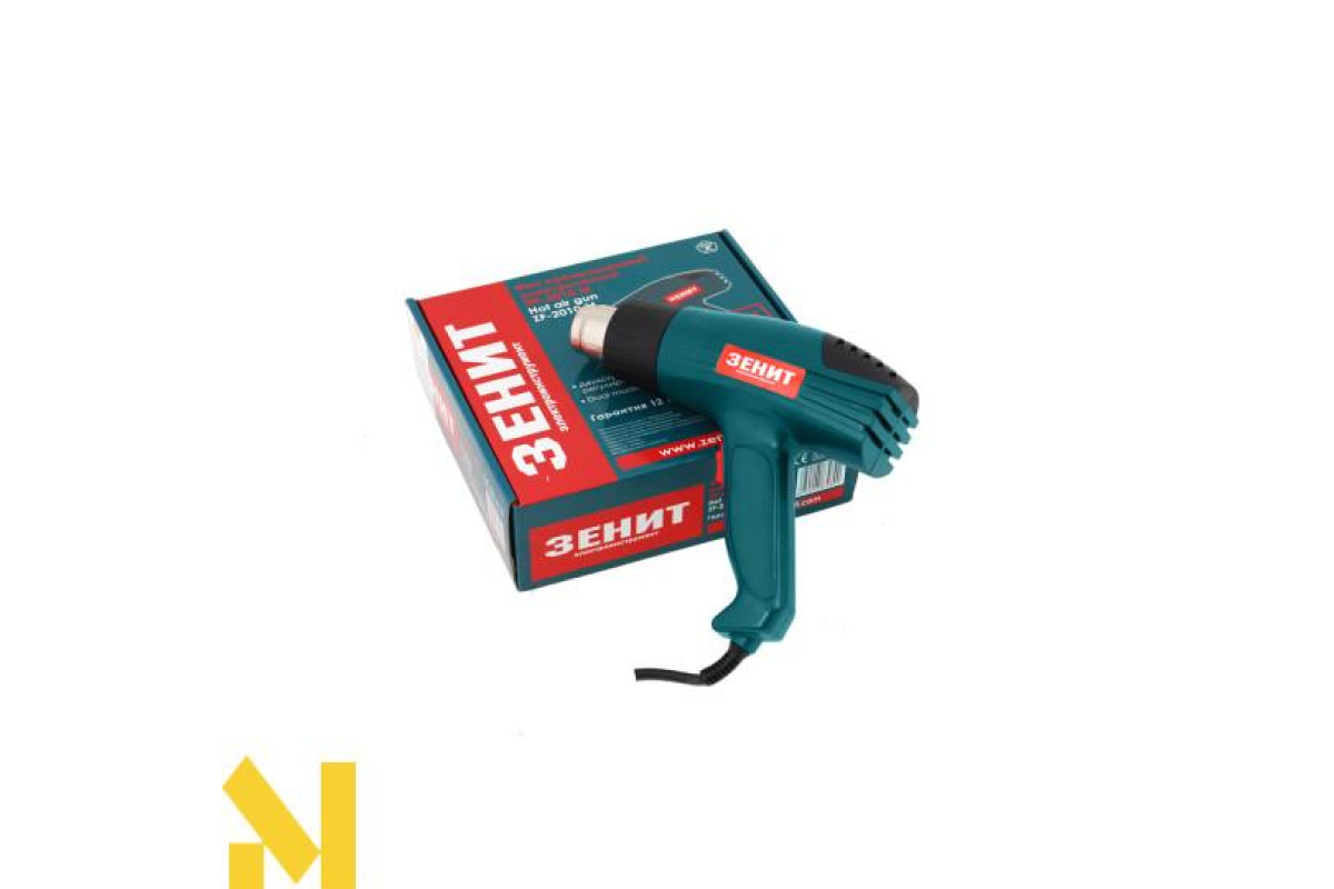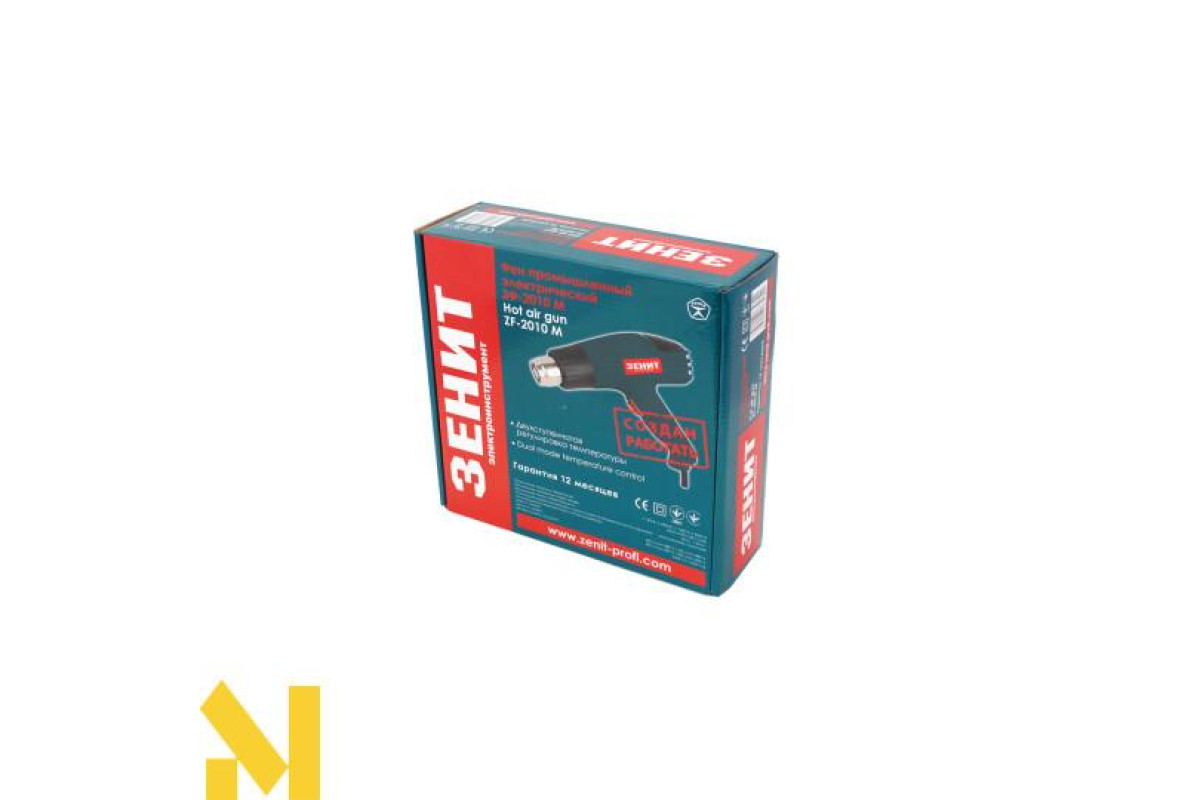 Упаковка картонна.Дана модель технічного фена має максимальну потужність 2000 Вт, два температурні режими, суміщених з двома режимами швидкості повітряного потоку. У першому режимі фен нагріває повітряний потік до 380 ° С при швидкості потоку 300 л / хв. У другому режимі температура потоку досягає максимальної позначки 500 ° С, при швидкості потоку 500 л / хв.