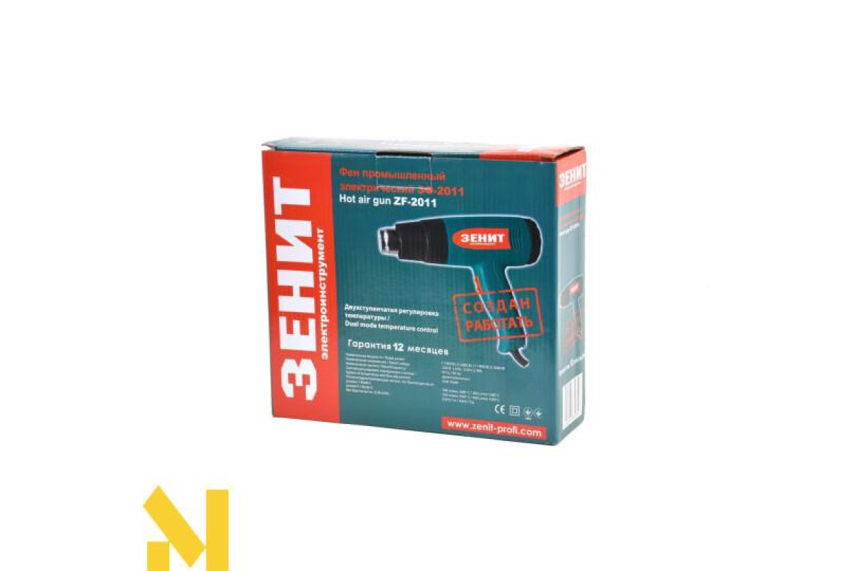 Фен технічний Зеніт ЗФ 2011 - інструмент, який можна використовувати в багатьох сферах діяльності. Їм виконують зварювання, різання і згинання пластмасових виробів, зварювання лінолеуму, зварювання руберойду, лудіння і паяння м'яким припоєм, розморожування водопровідних труб, зняття старого лакофарбового покриття і т.д., і будь-яку іншу роботу, де необхідний локальний нагрів. Технічний фен має плавне регулювання температури, регулювання потоку повітря, оснащений термозахистом.