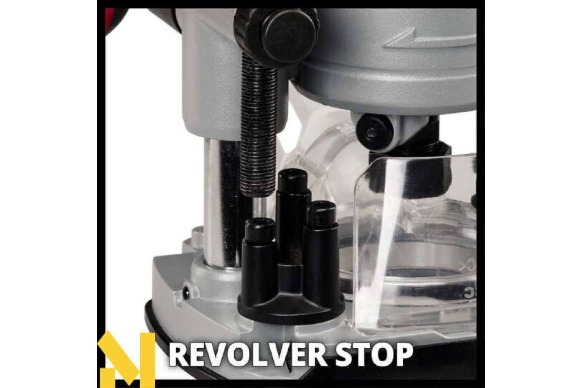 Фрезер Einhell TP-RO 18 Li BL - Solo має багатоступеневе гальмо револьверного типу і точне регулювання глибини фрезерування з точністю до 0,1 мм.